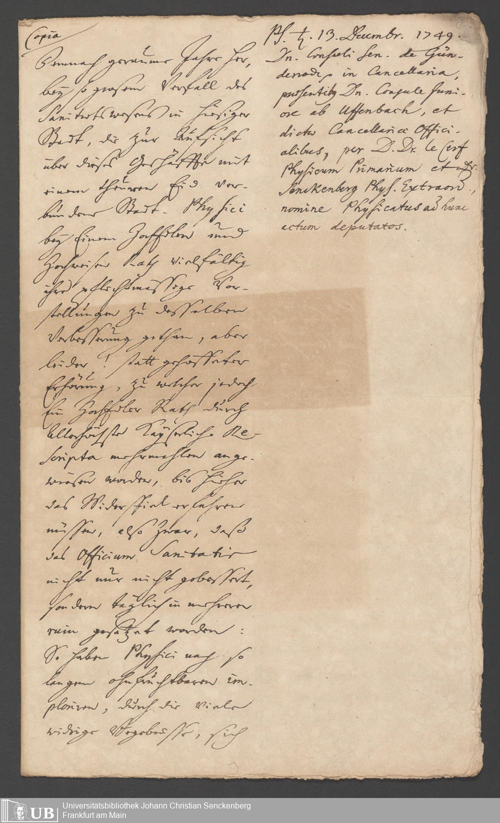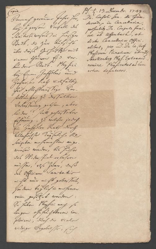 Na 31 Nachlass Johann Christian Senckenberg, 287 - Notizen Johann Christian Senckenbergs zum Sanitätsamt