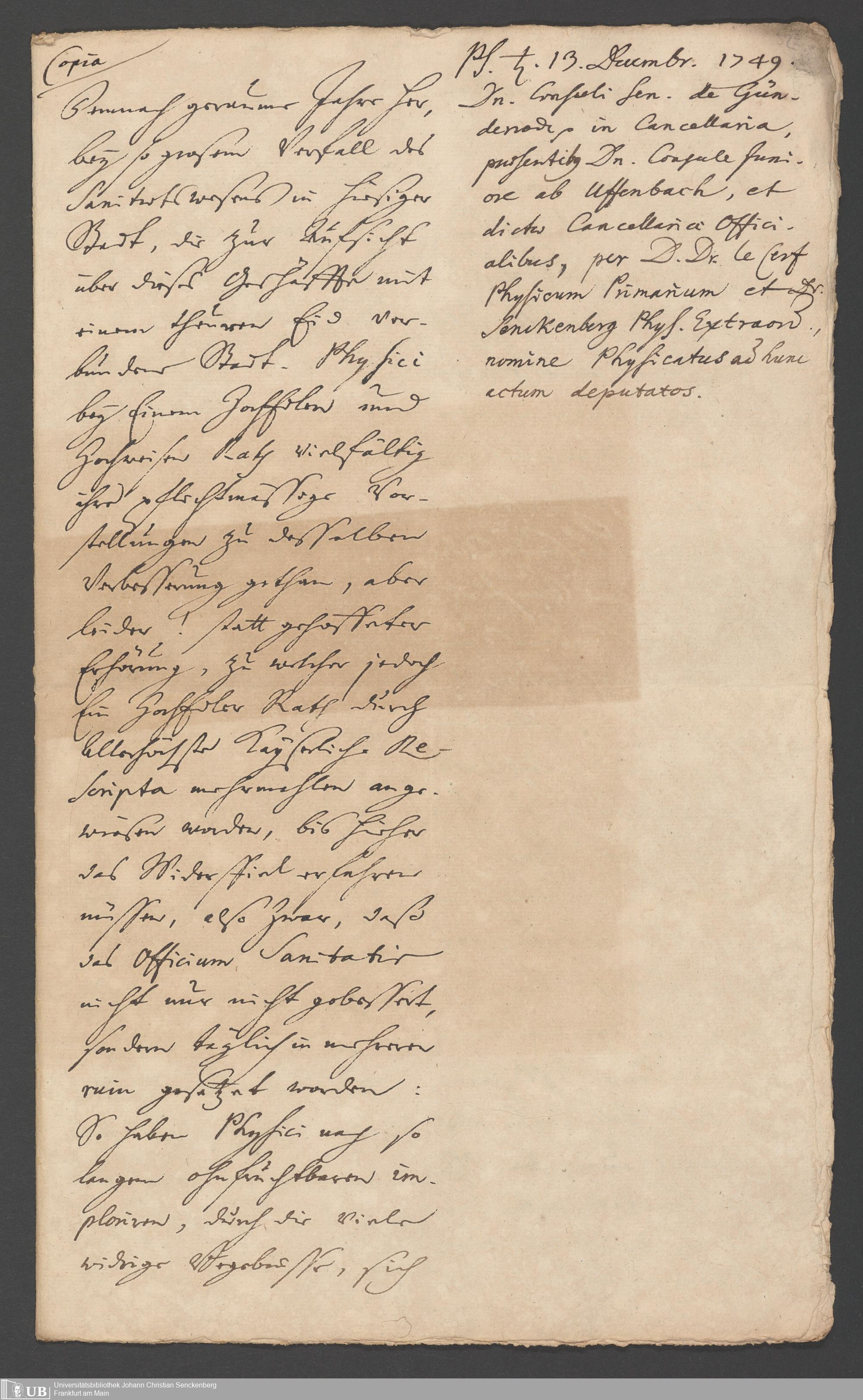 Nachlass Johann Christian Senckenberg