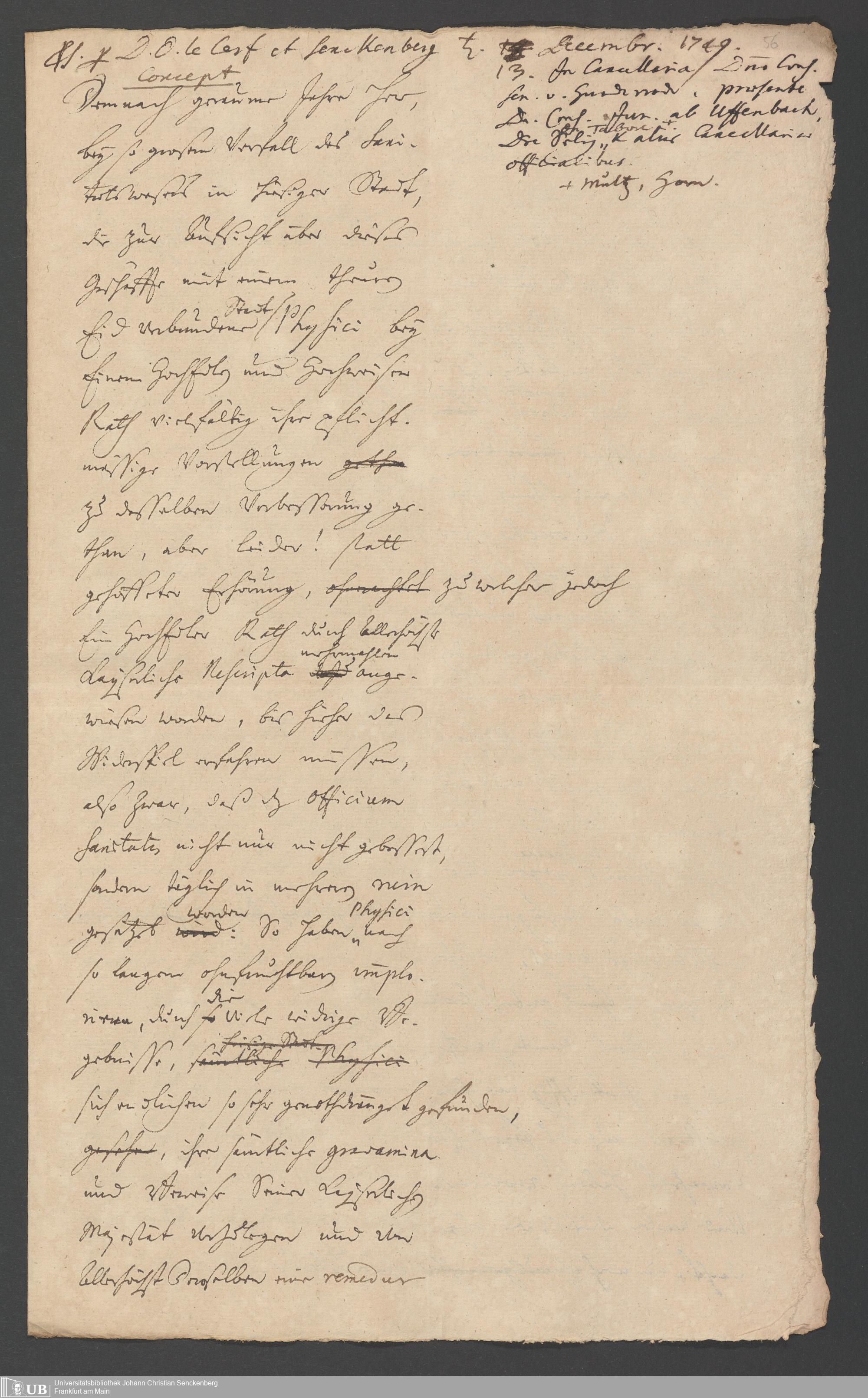 Na 31 Nachlass Johann Christian Senckenberg, 287 - Notizen Johann Christian Senckenbergs zum Sanitätsamt