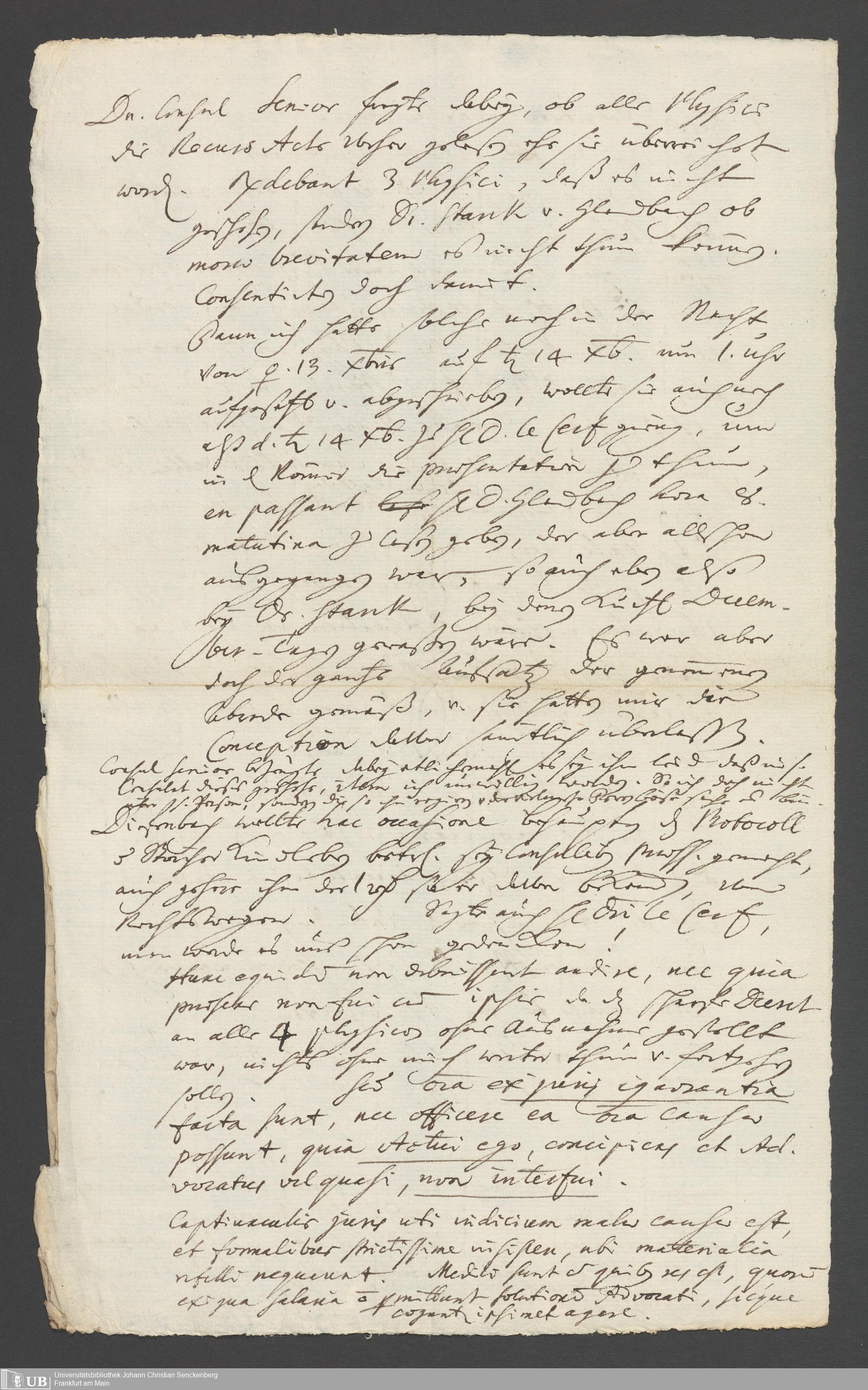 Na 31 Nachlass Johann Christian Senckenberg, 287 - Notizen Johann Christian Senckenbergs zum Sanitätsamt