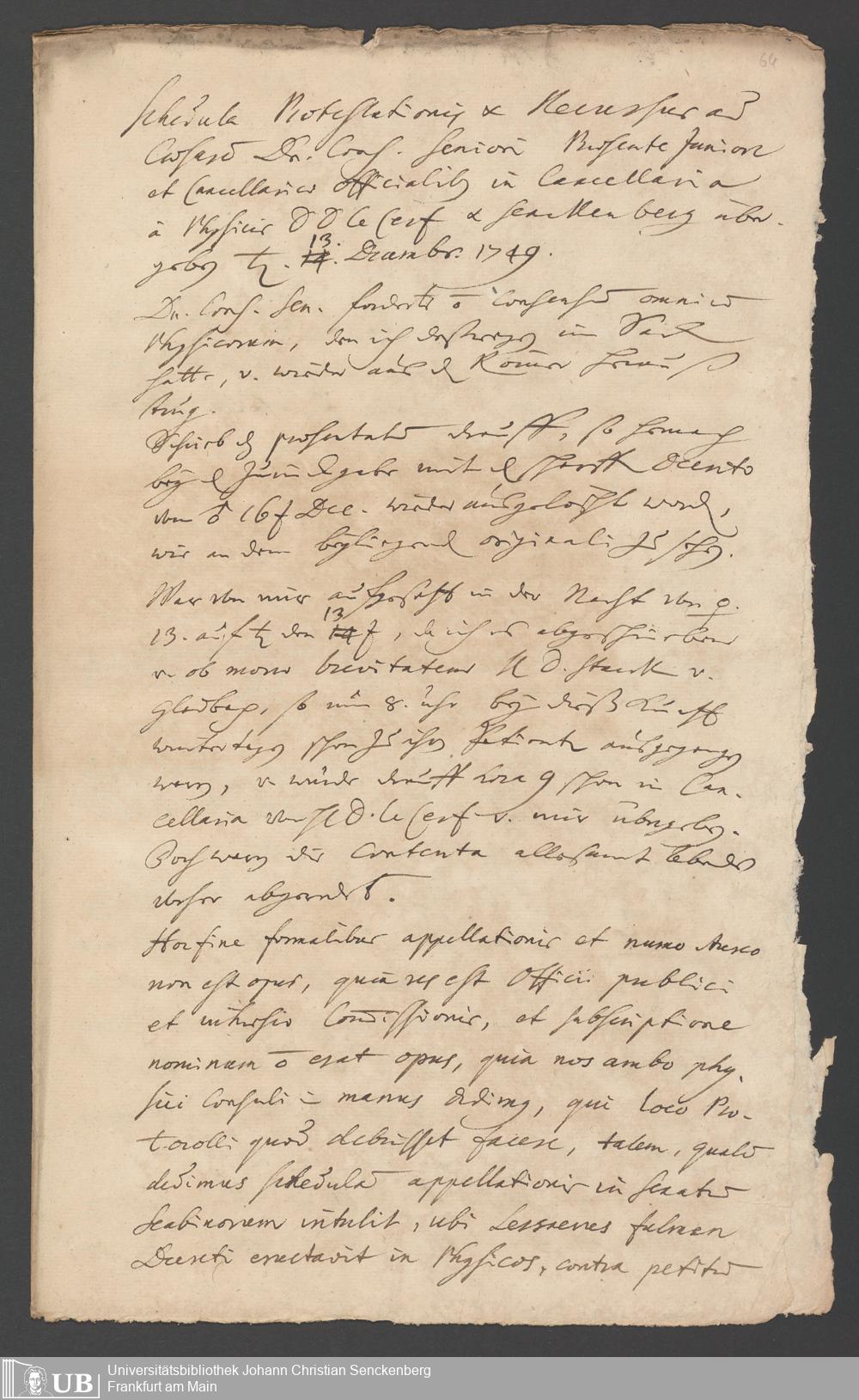 Na 31 Nachlass Johann Christian Senckenberg, 287 - Notizen Johann Christian Senckenbergs zum Sanitätsamt