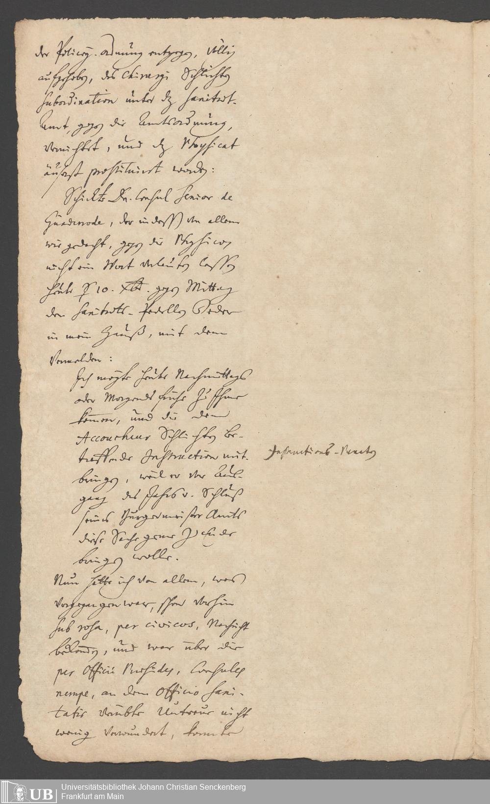 Na 31 Nachlass Johann Christian Senckenberg, 287 - Notizen Johann Christian Senckenbergs zum Sanitätsamt