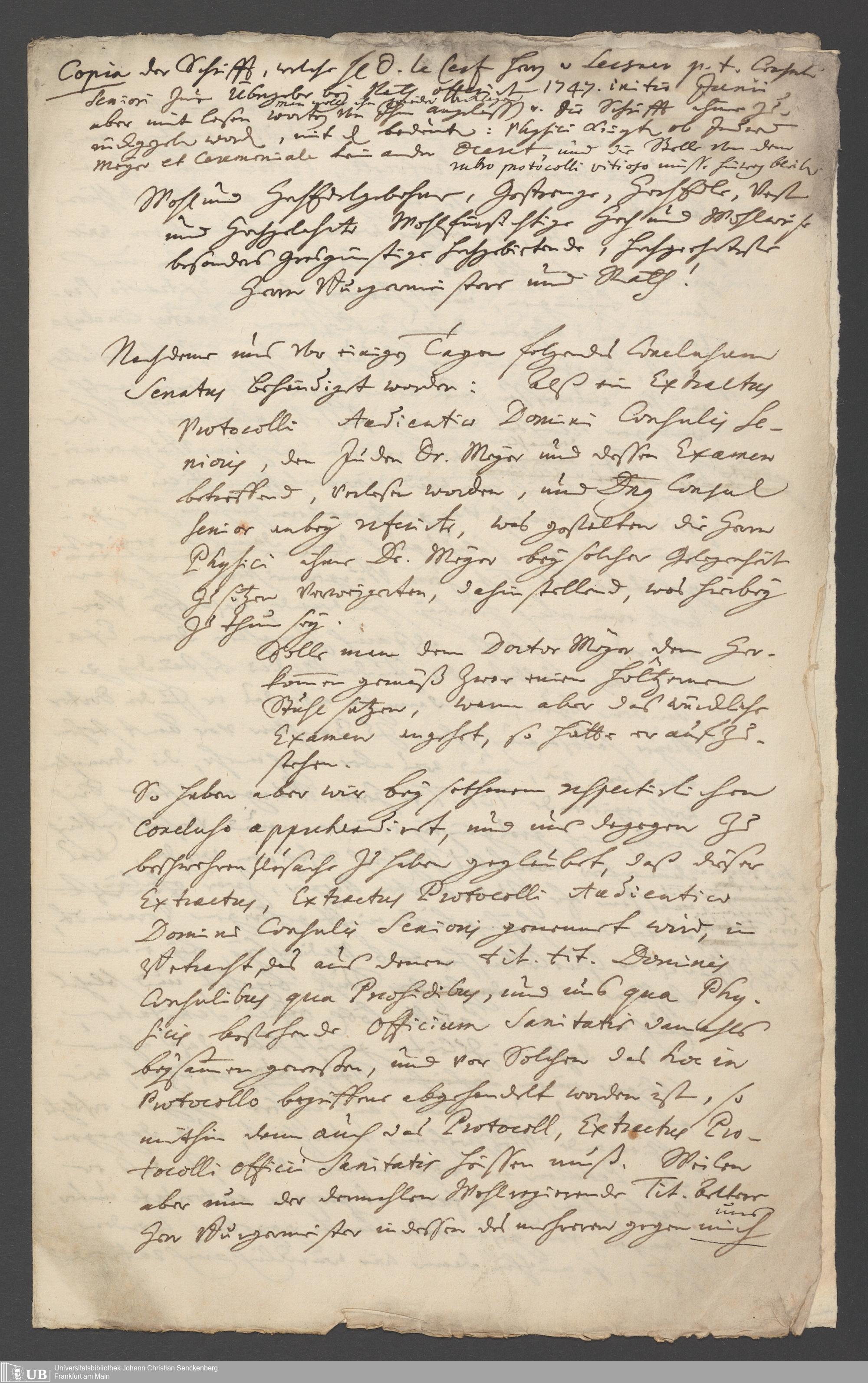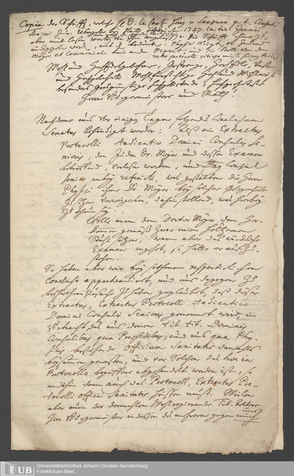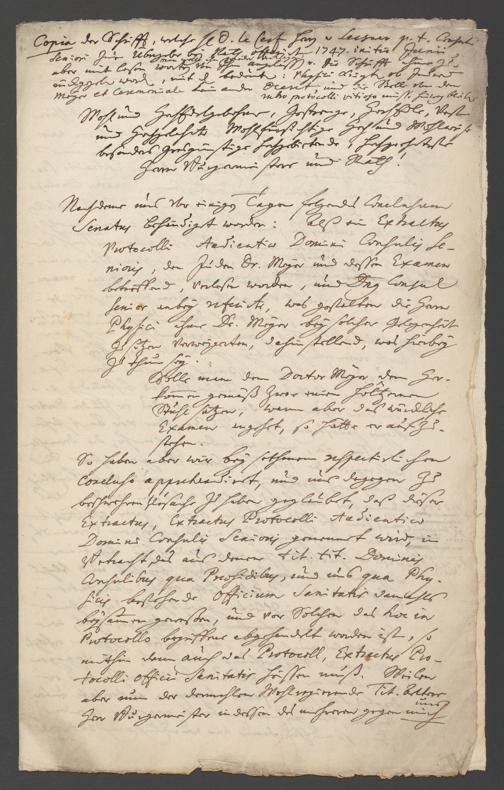 Na 31 Nachlass Johann Christian Senckenberg, 287 - Notizen Johann Christian Senckenbergs zum Sanitätsamt