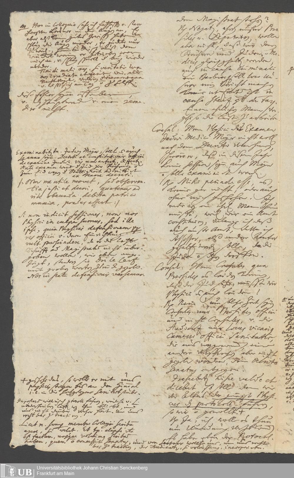 Na 31 Nachlass Johann Christian Senckenberg, 287 - Notizen Johann Christian Senckenbergs zum Sanitätsamt