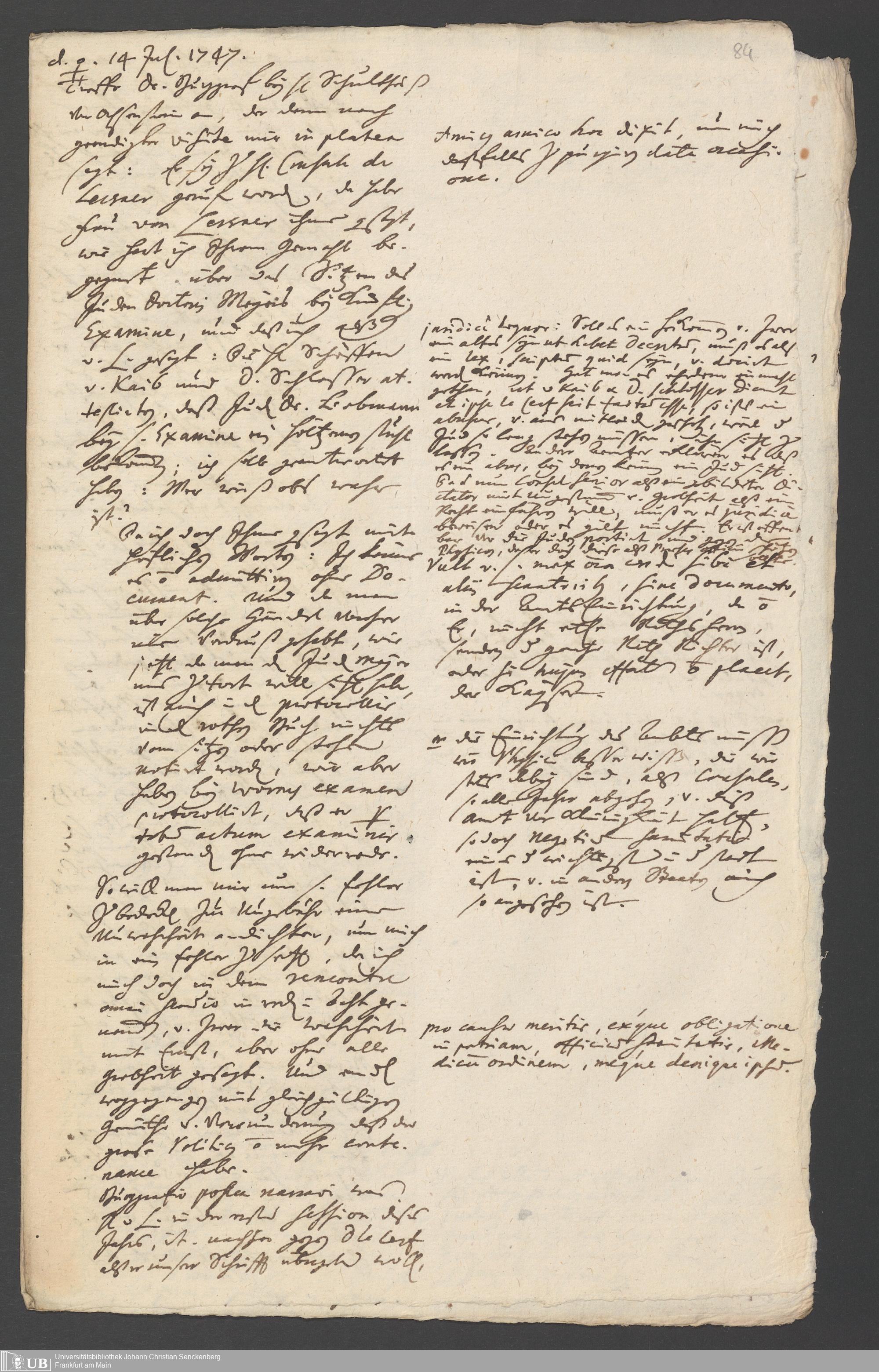 Na 31 Nachlass Johann Christian Senckenberg, 287 - Notizen Johann Christian Senckenbergs zum Sanitätsamt