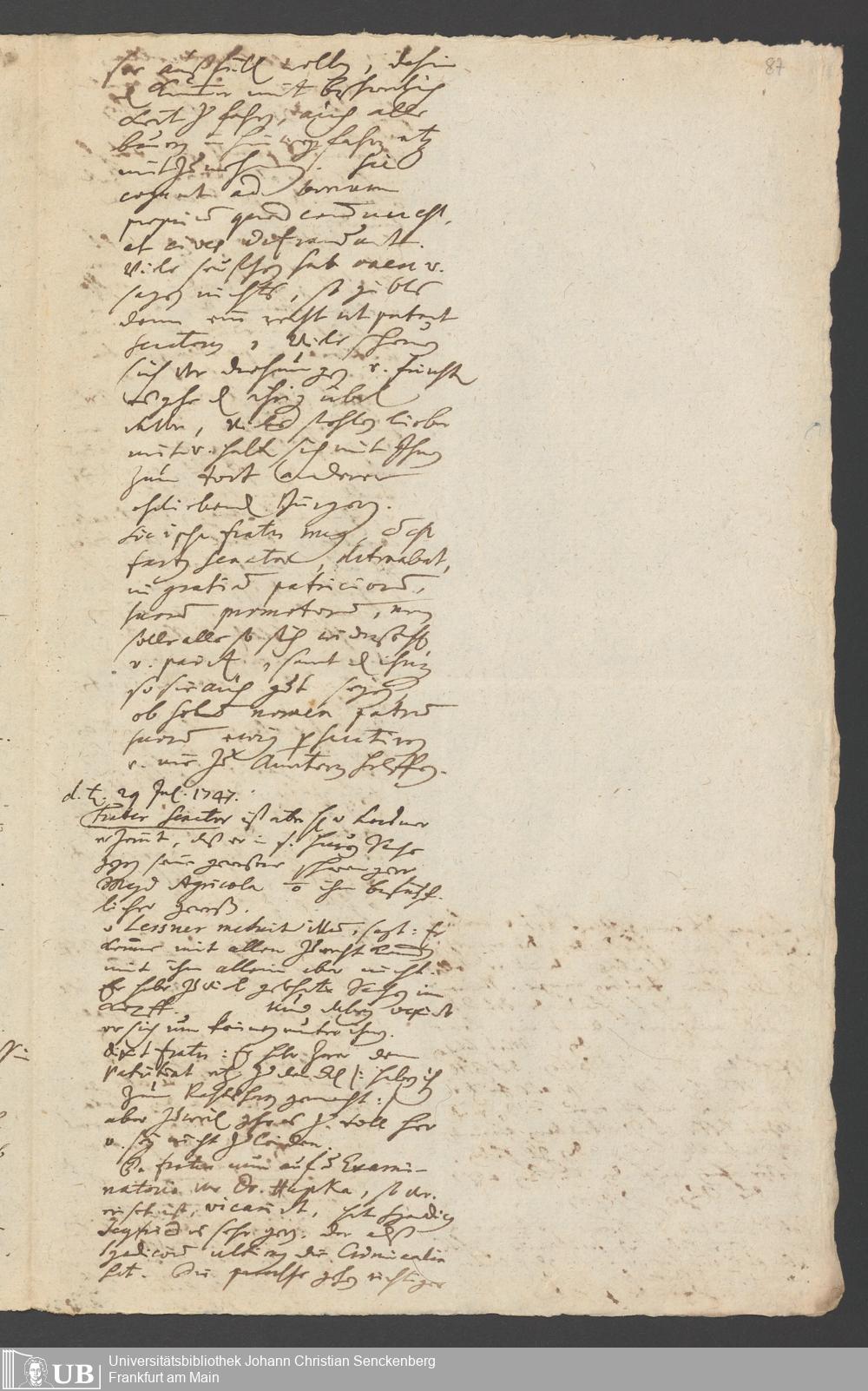 Na 31 Nachlass Johann Christian Senckenberg, 287 - Notizen Johann Christian Senckenbergs zum Sanitätsamt