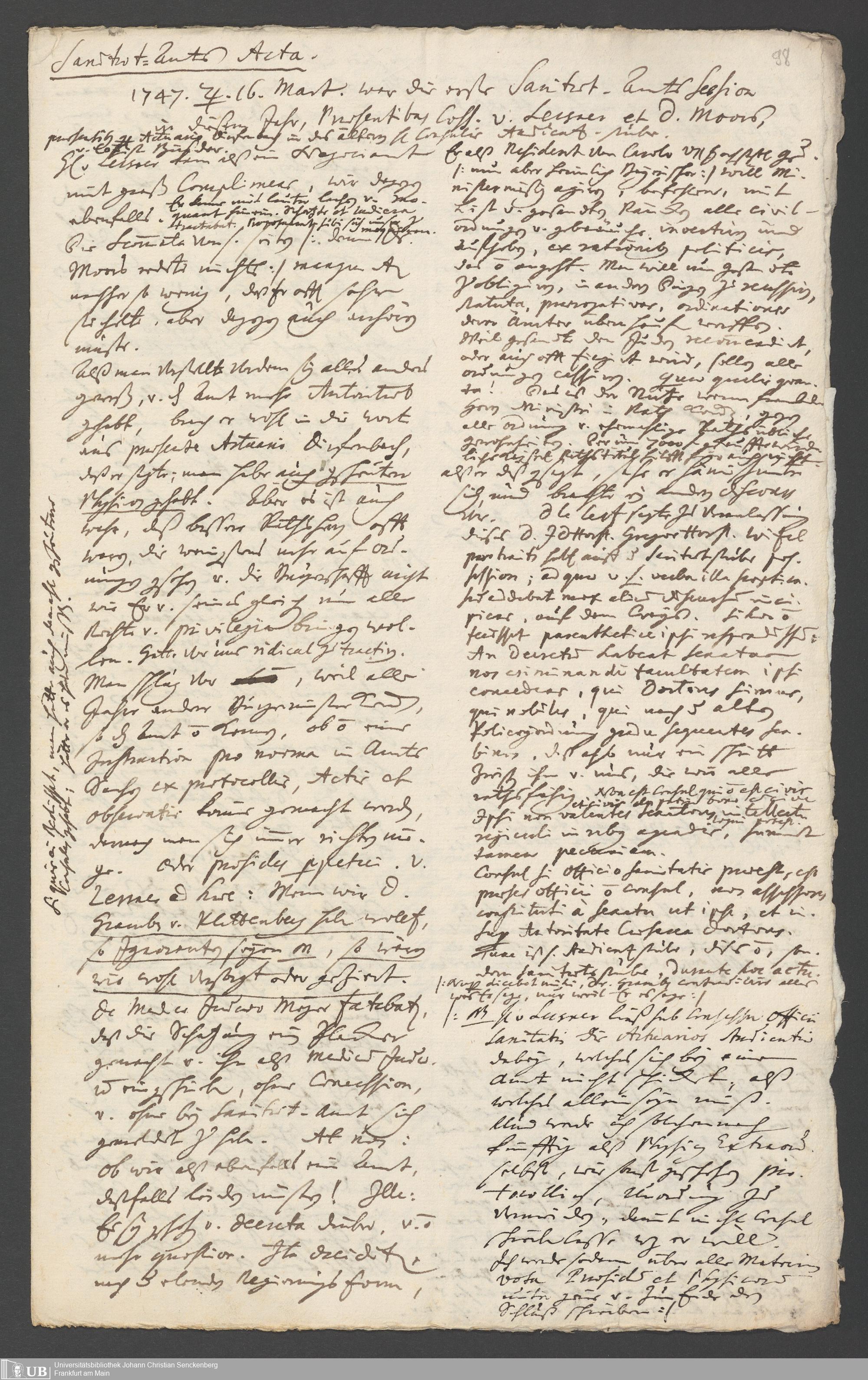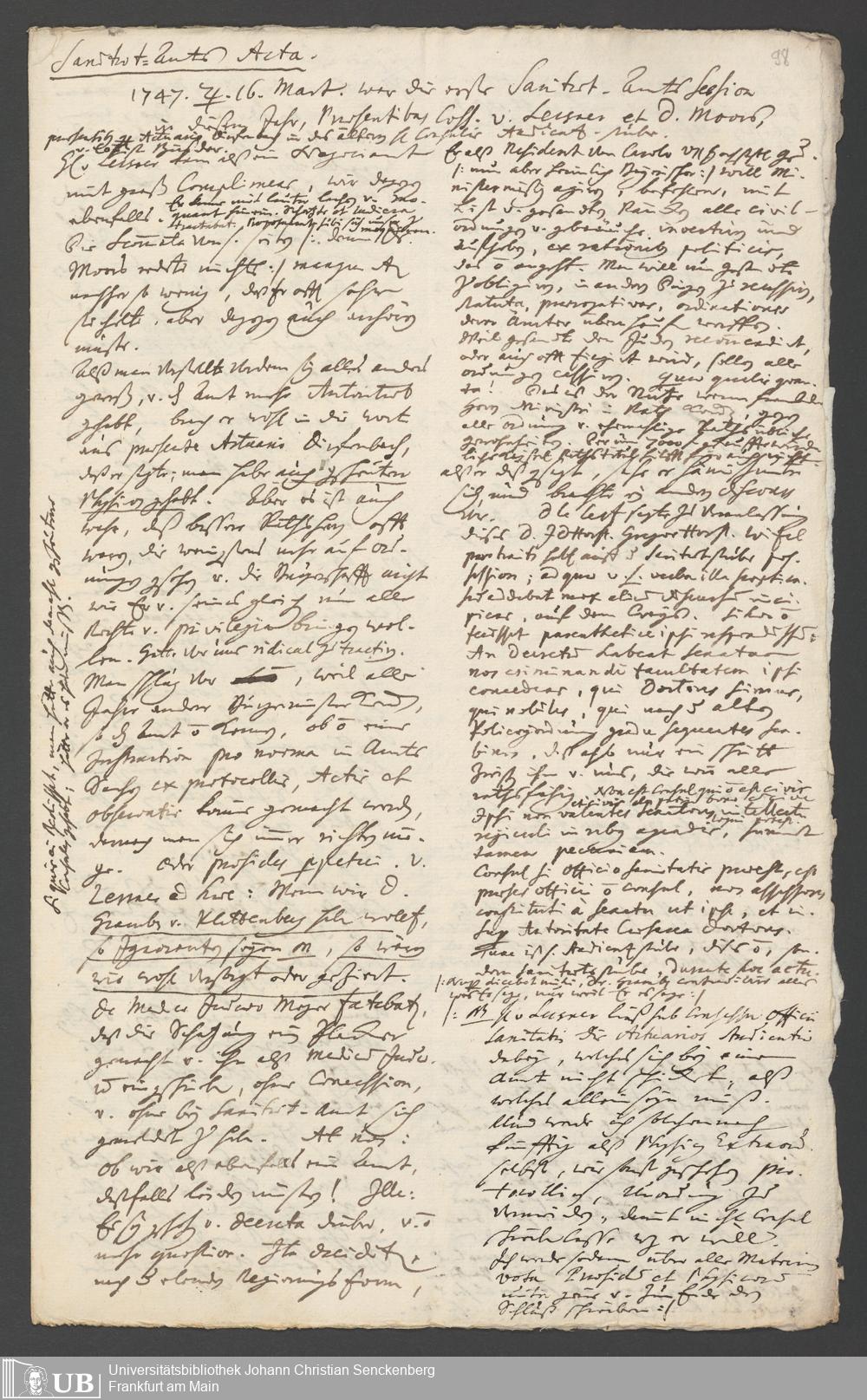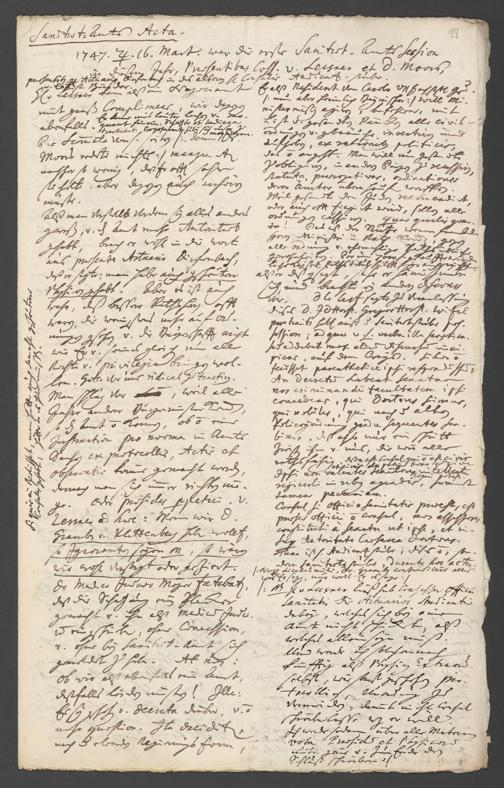 Na 31 Nachlass Johann Christian Senckenberg, 287 - Notizen Johann Christian Senckenbergs zum Sanitätsamt