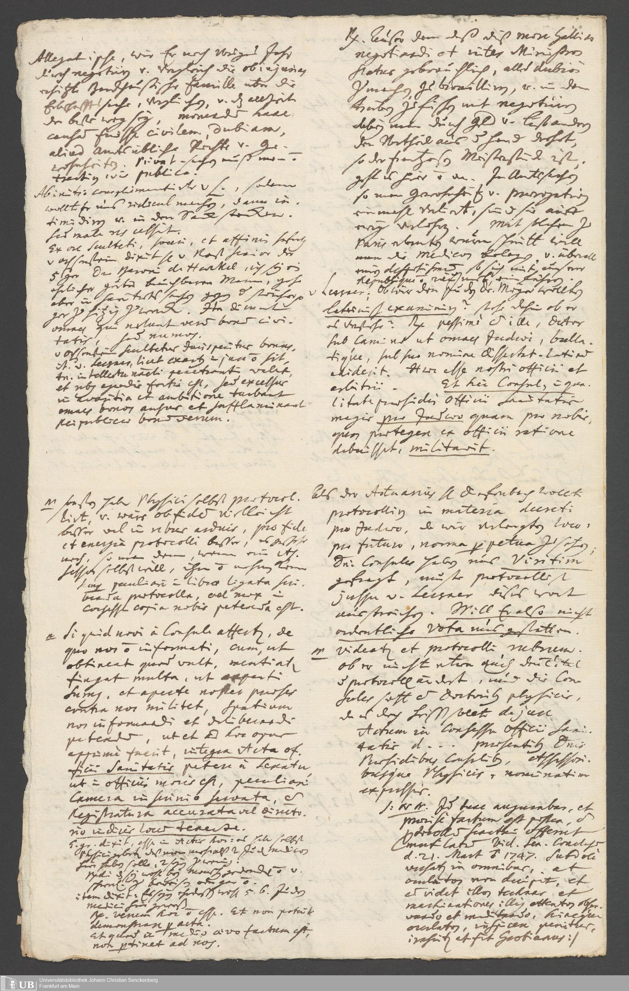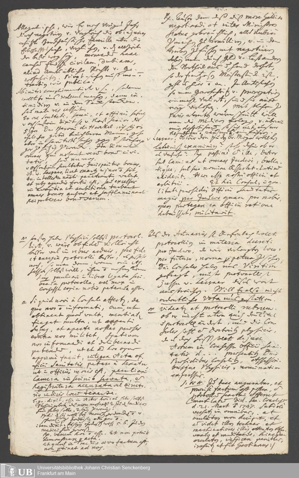 Na 31 Nachlass Johann Christian Senckenberg, 287 - Notizen Johann Christian Senckenbergs zum Sanitätsamt