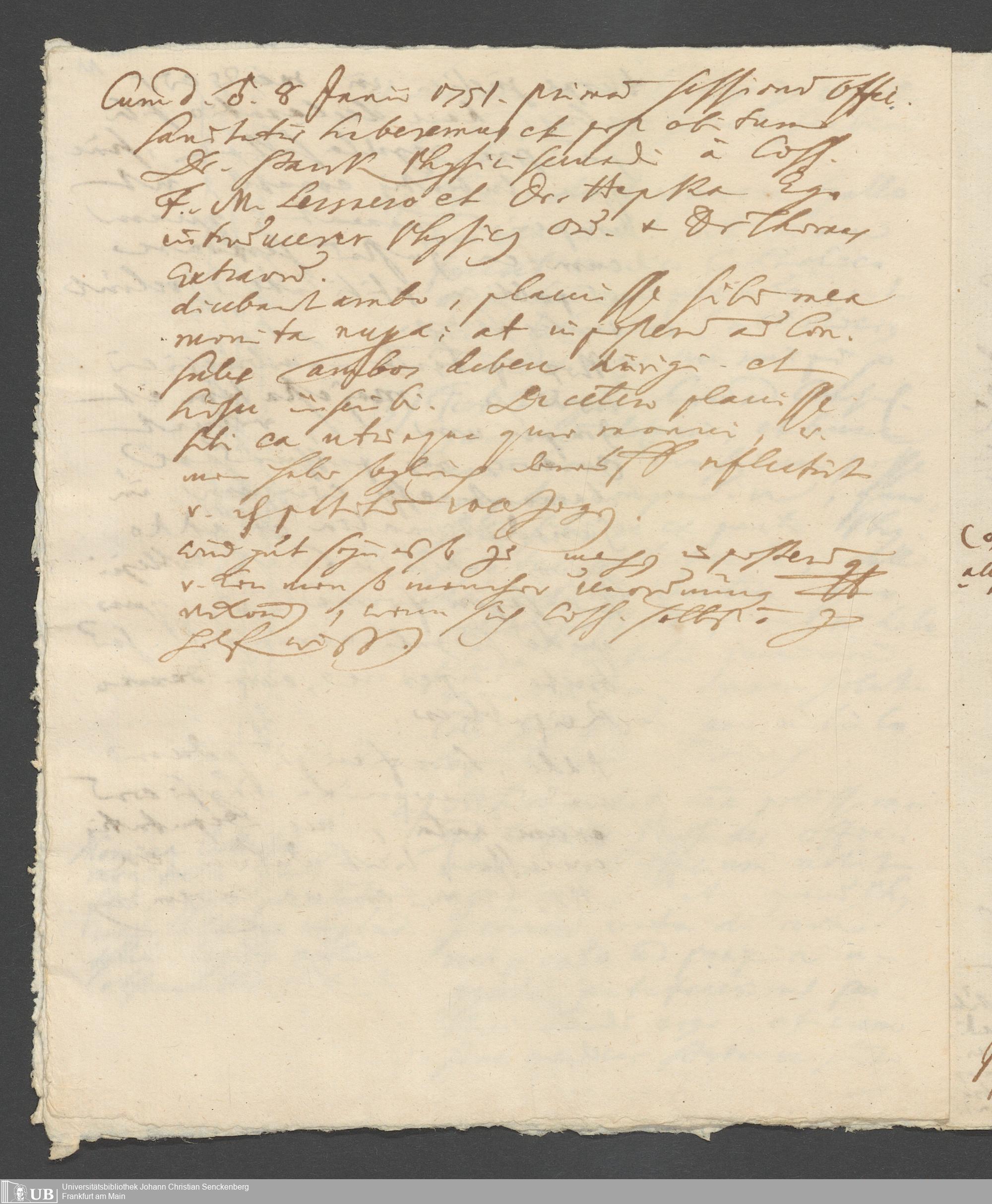Na 31 Nachlass Johann Christian Senckenberg, 287 - Notizen Johann Christian Senckenbergs zum Sanitätsamt