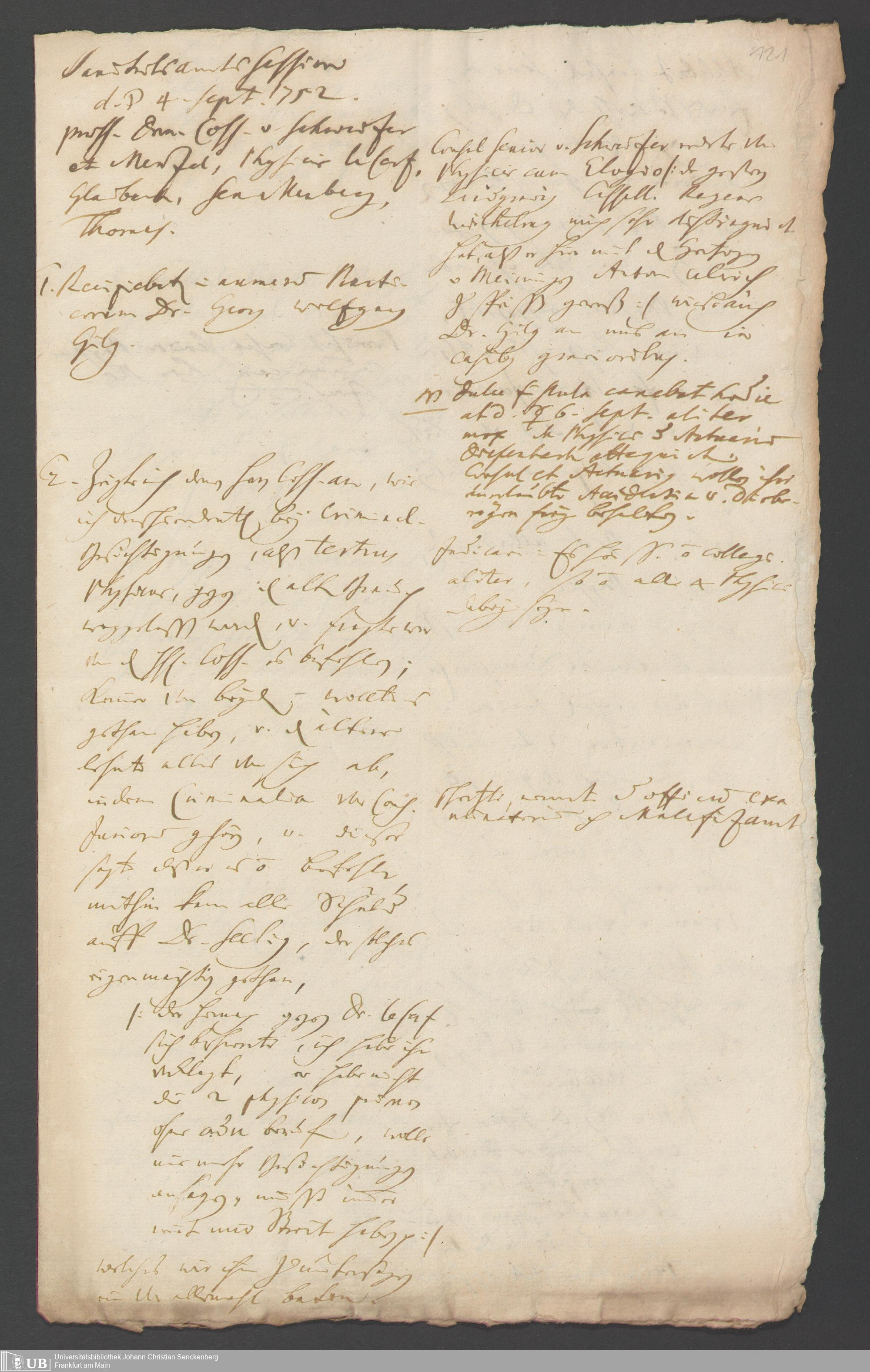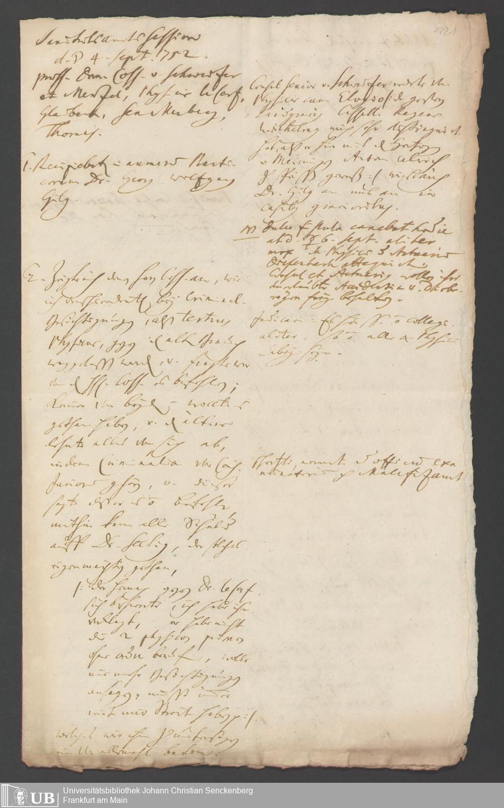 Na 31 Nachlass Johann Christian Senckenberg, 287 - Notizen Johann Christian Senckenbergs zum Sanitätsamt