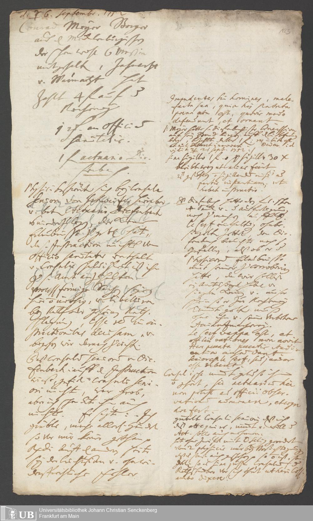 Na 31 Nachlass Johann Christian Senckenberg, 287 - Notizen Johann Christian Senckenbergs zum Sanitätsamt