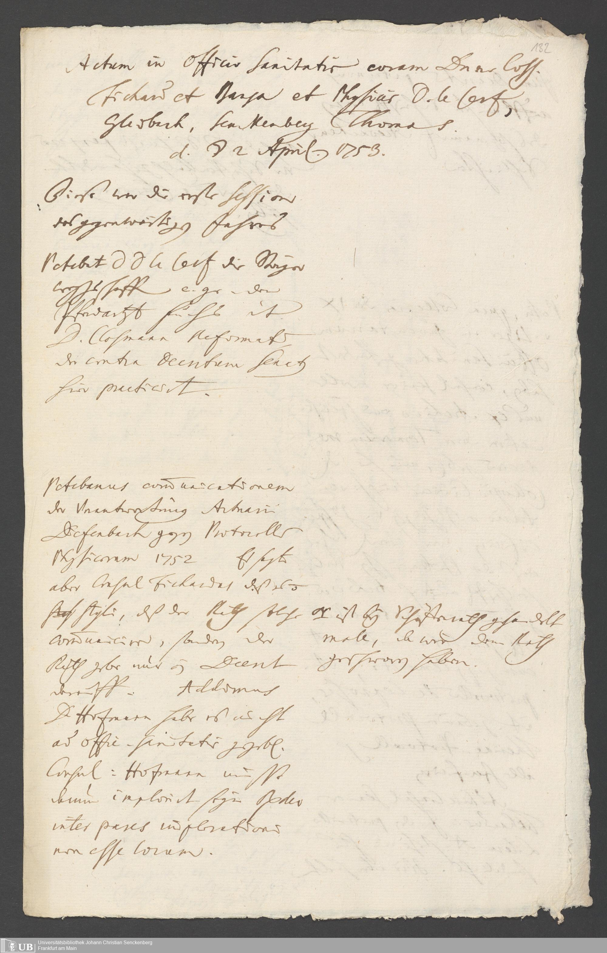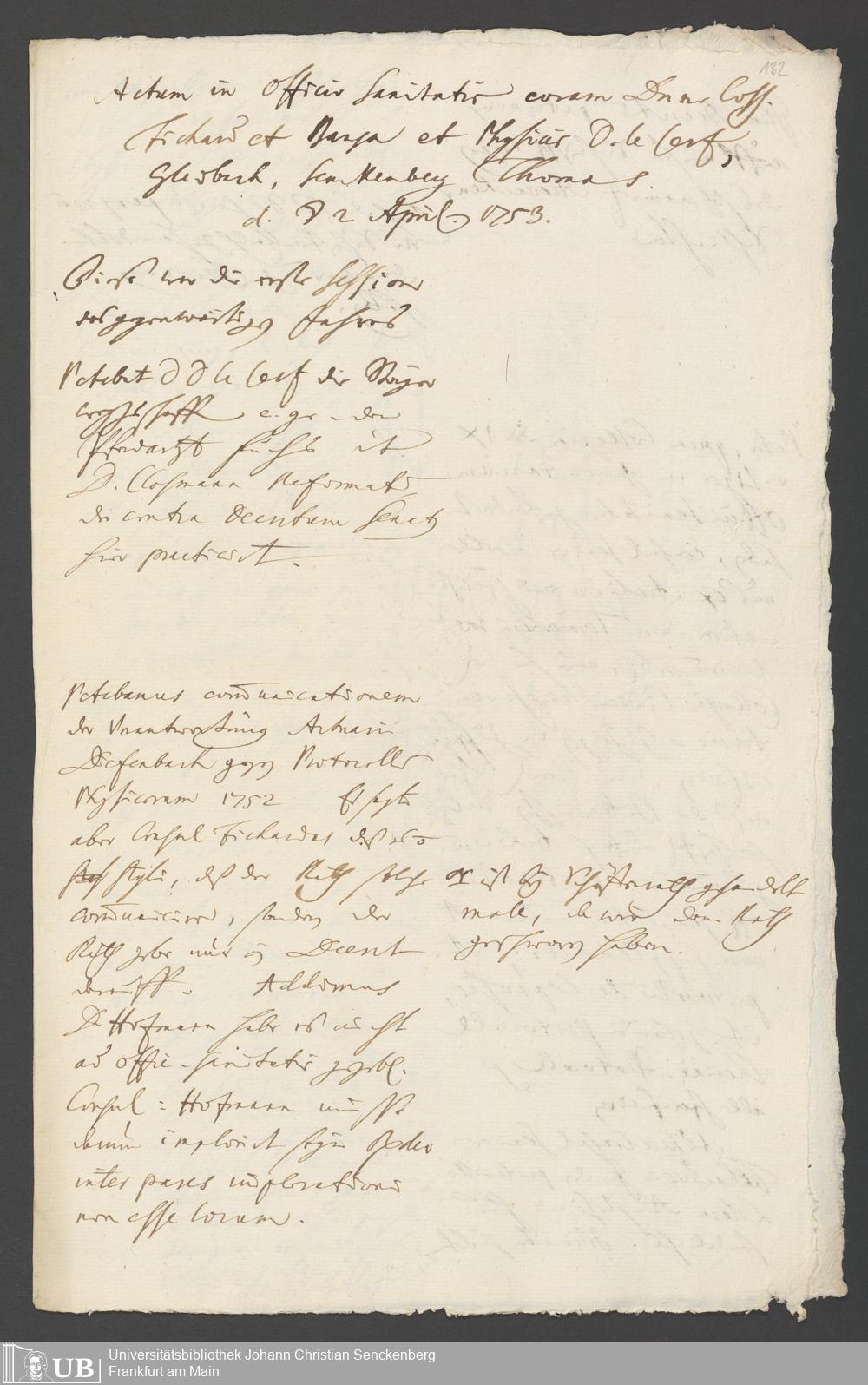 Na 31 Nachlass Johann Christian Senckenberg, 287 - Notizen Johann Christian Senckenbergs zum Sanitätsamt