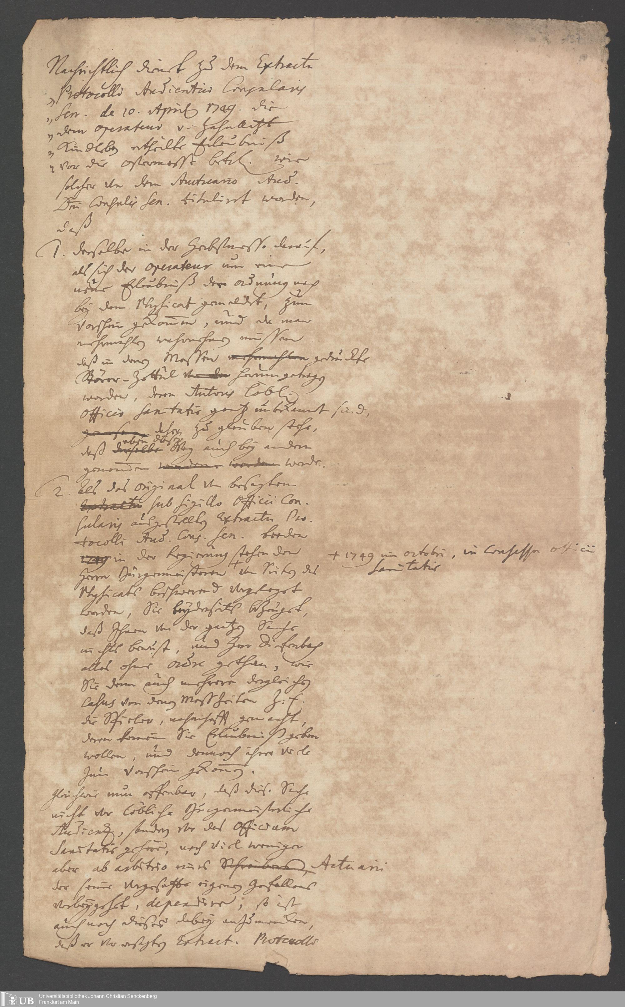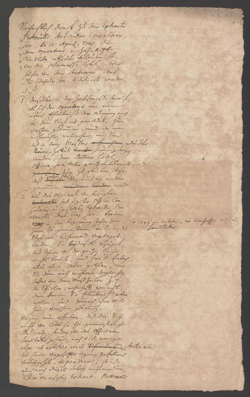 Na 31 Nachlass Johann Christian Senckenberg, 287 - Notizen Johann Christian Senckenbergs zum Sanitätsamt