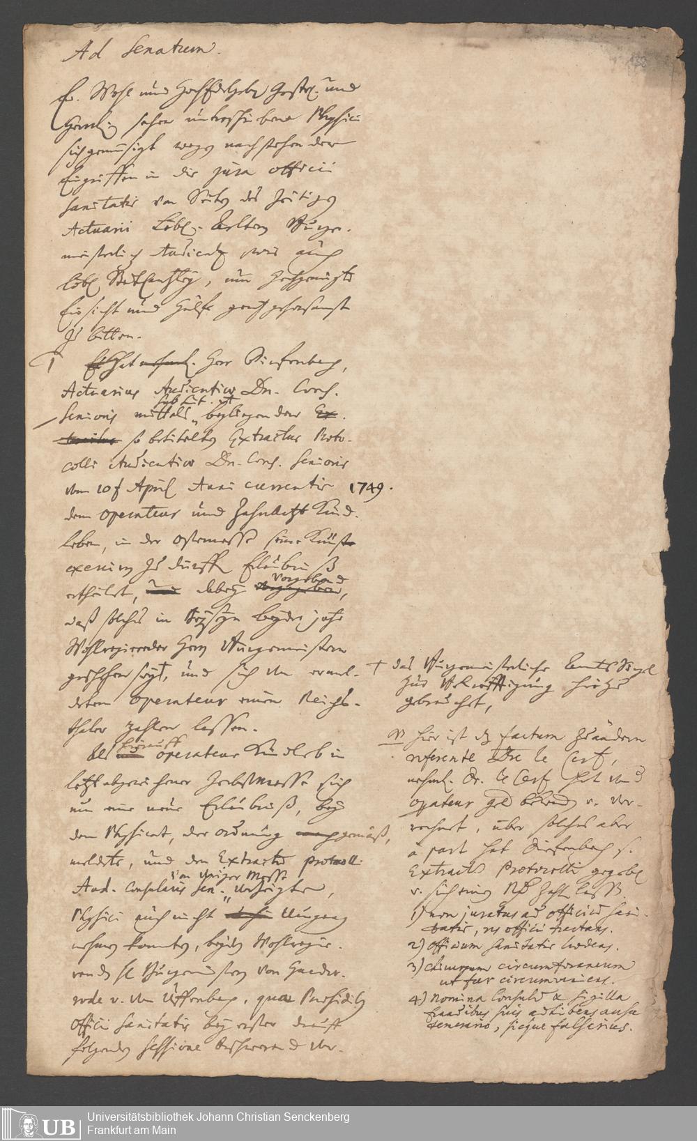 Na 31 Nachlass Johann Christian Senckenberg, 287 - Notizen Johann Christian Senckenbergs zum Sanitätsamt