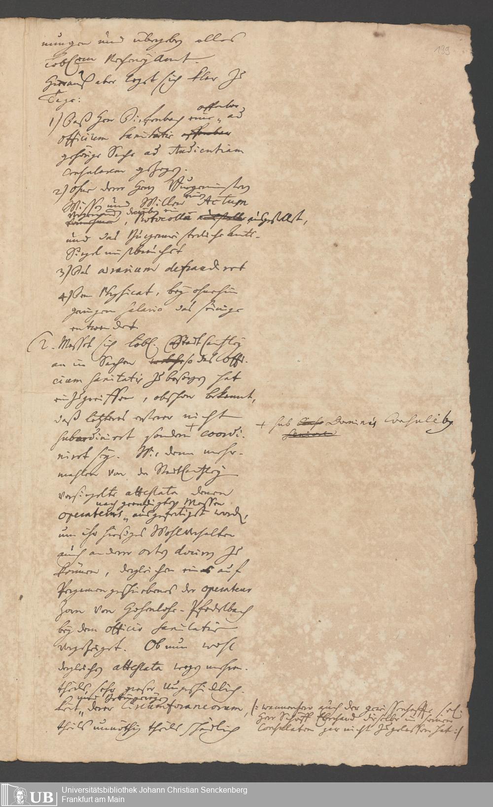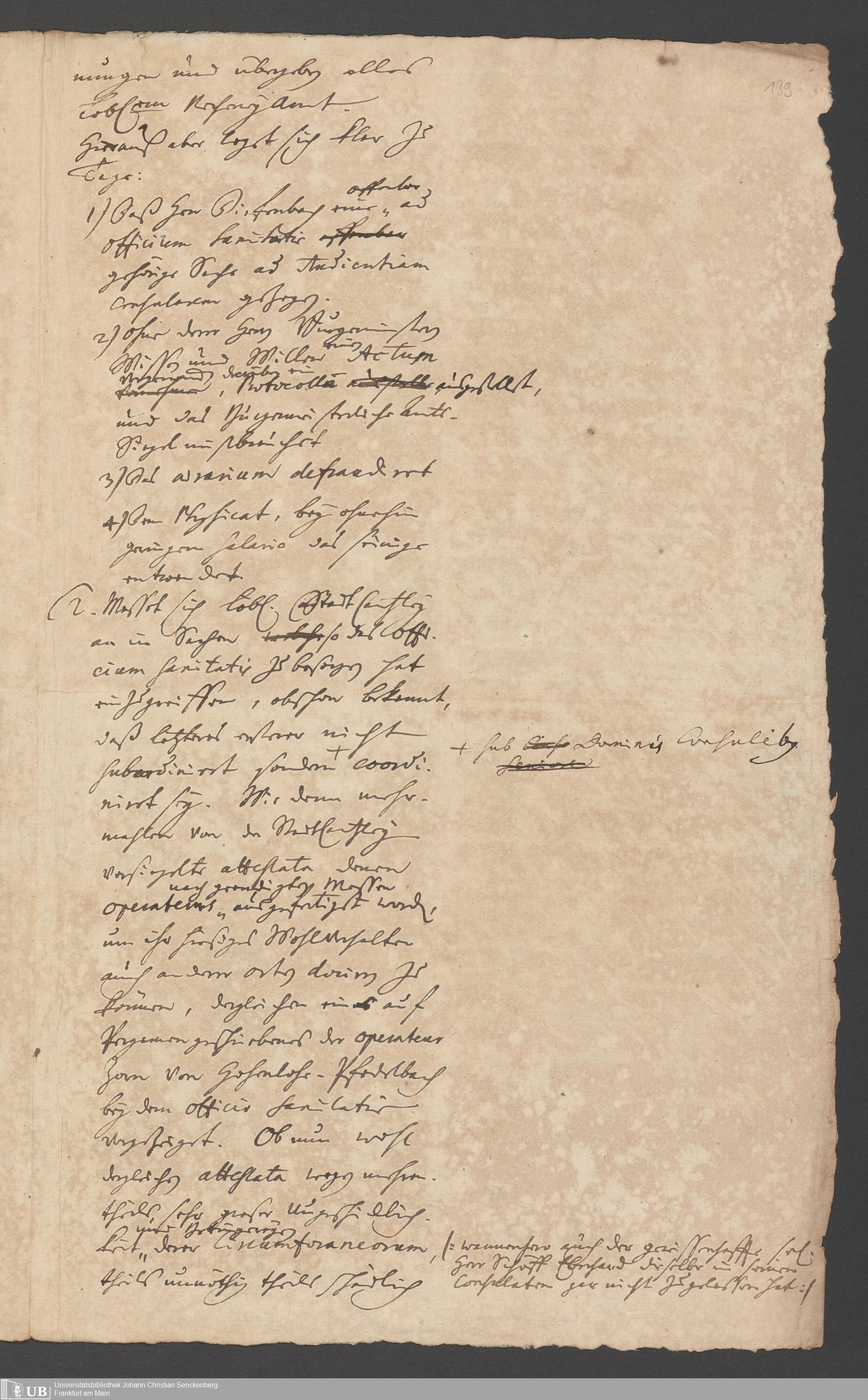 Na 31 Nachlass Johann Christian Senckenberg, 287 - Notizen Johann Christian Senckenbergs zum Sanitätsamt