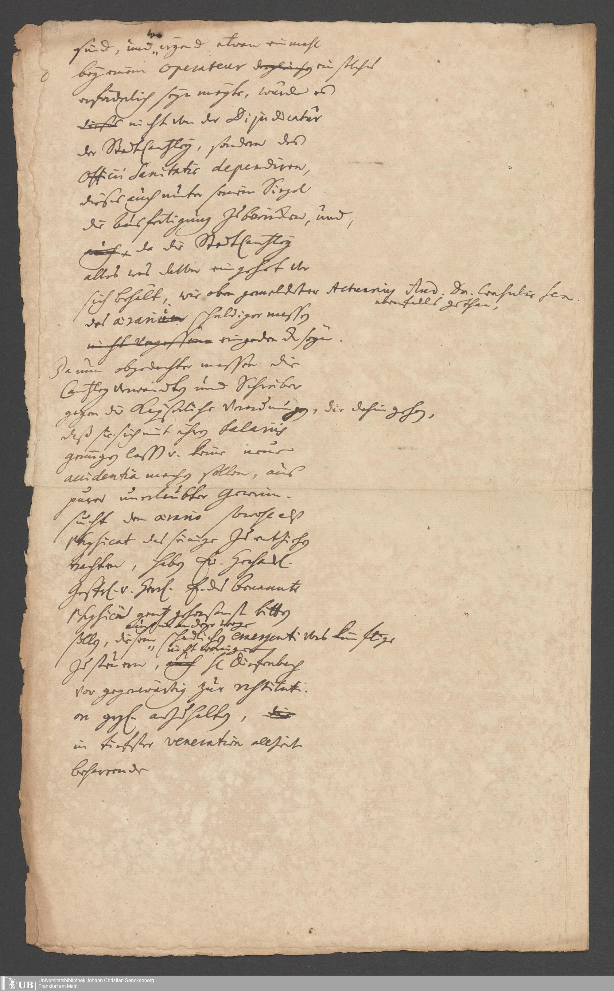 Na 31 Nachlass Johann Christian Senckenberg, 287 - Notizen Johann Christian Senckenbergs zum Sanitätsamt