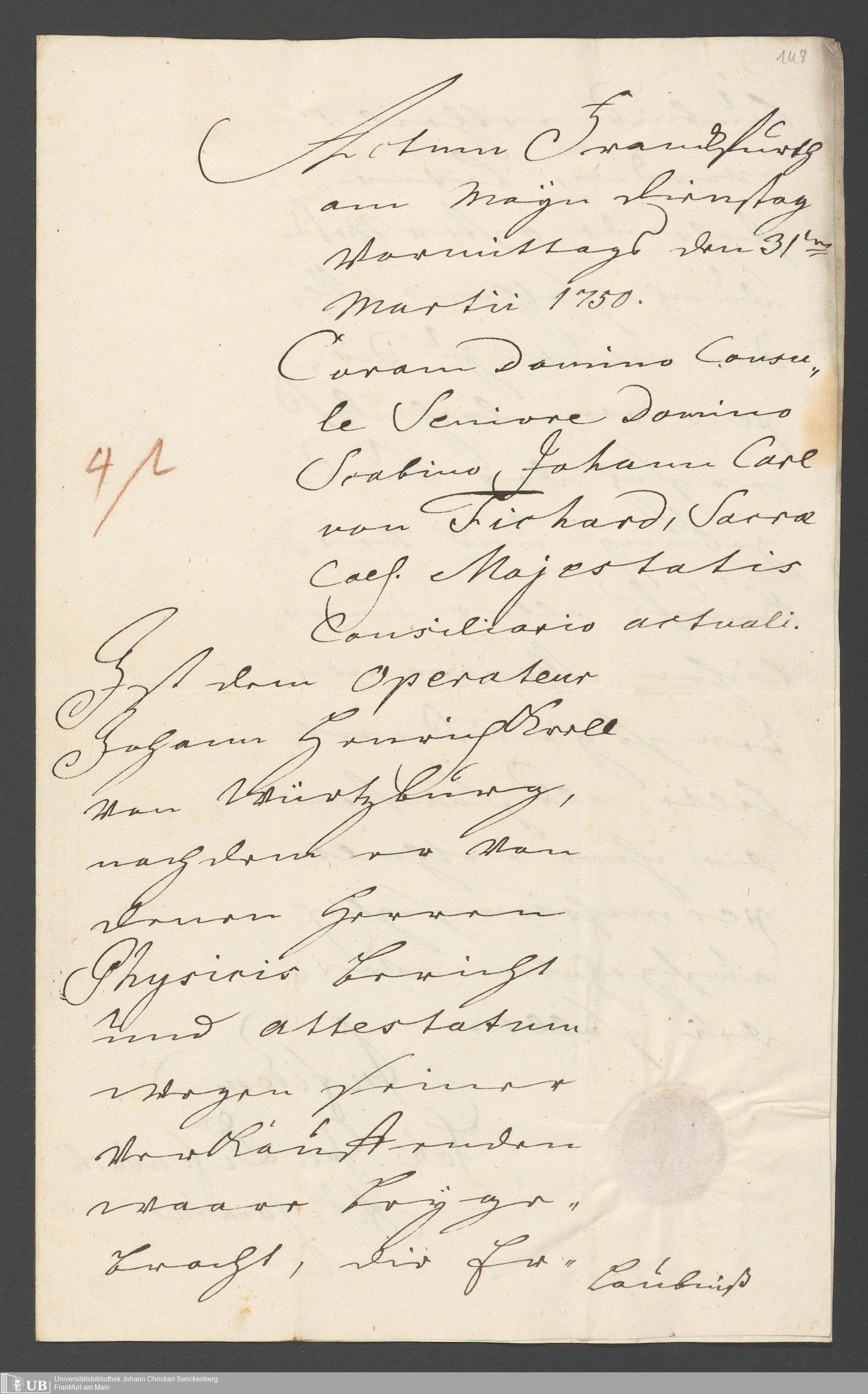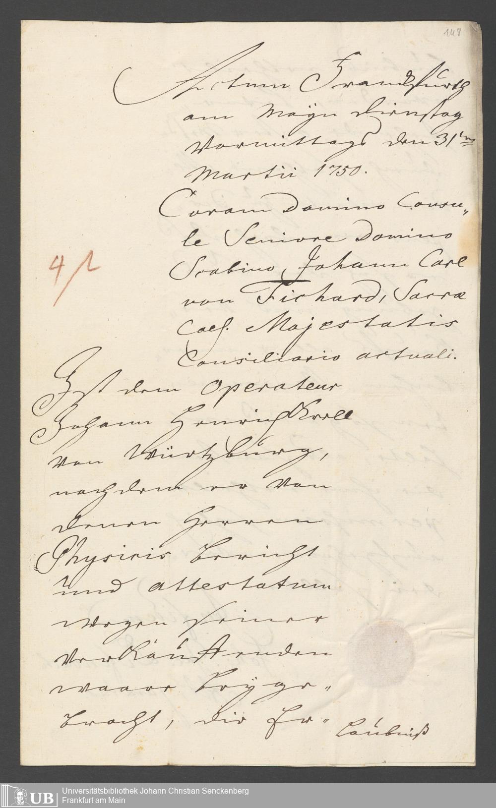 Na 31 Nachlass Johann Christian Senckenberg, 287 - Notizen Johann Christian Senckenbergs zum Sanitätsamt