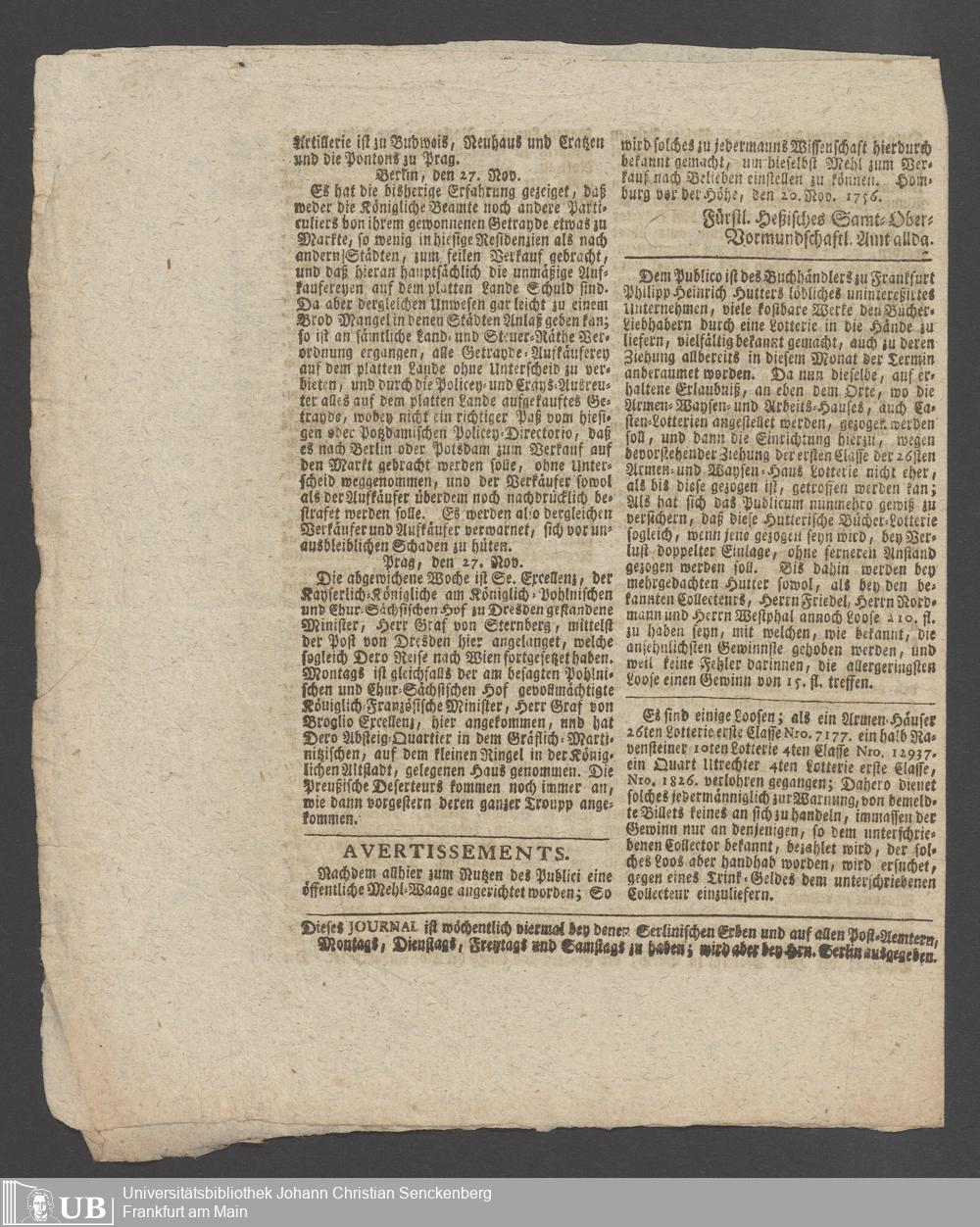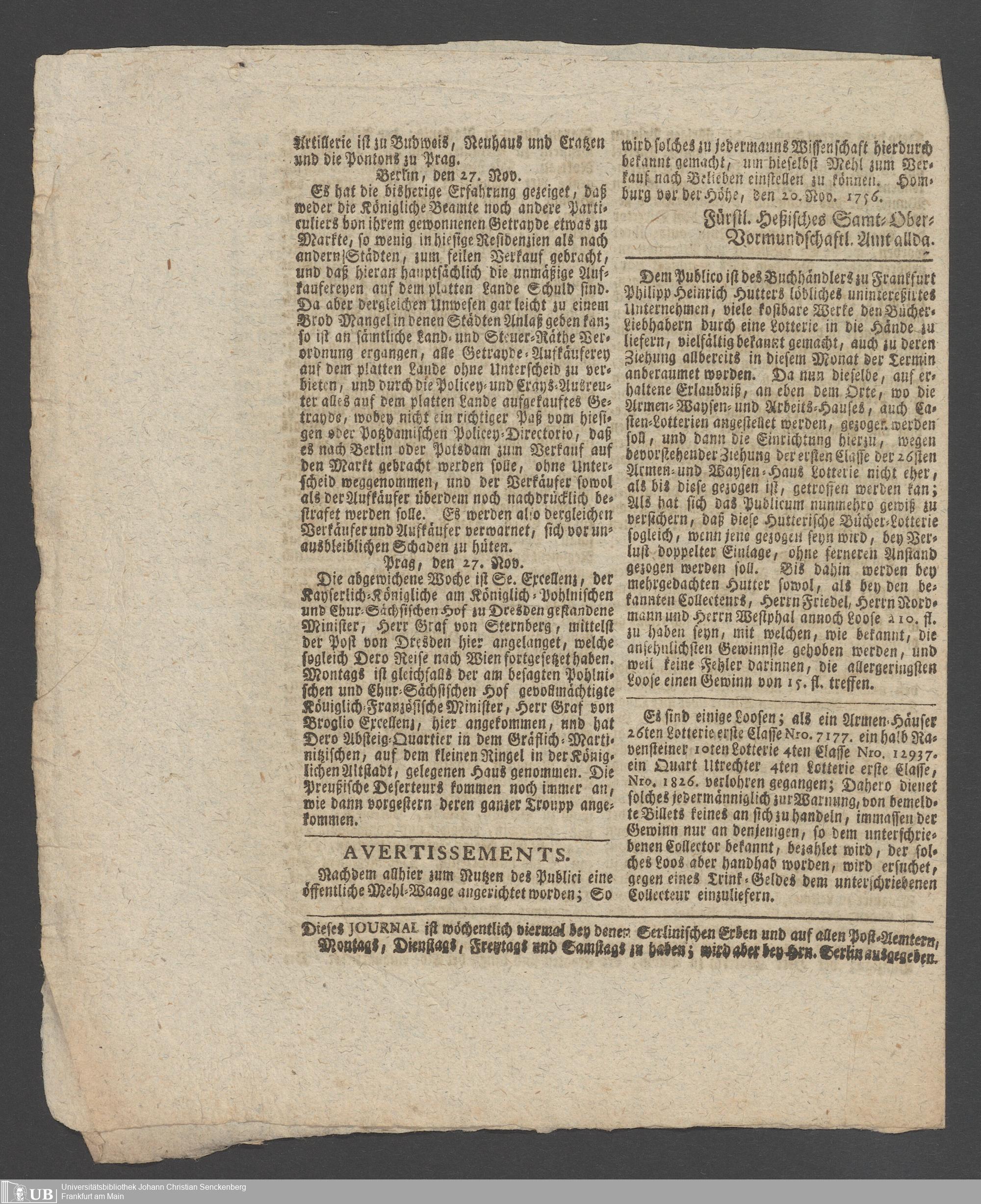 Na 31 Nachlass Johann Christian Senckenberg, 288 - Zeitungsartikel
