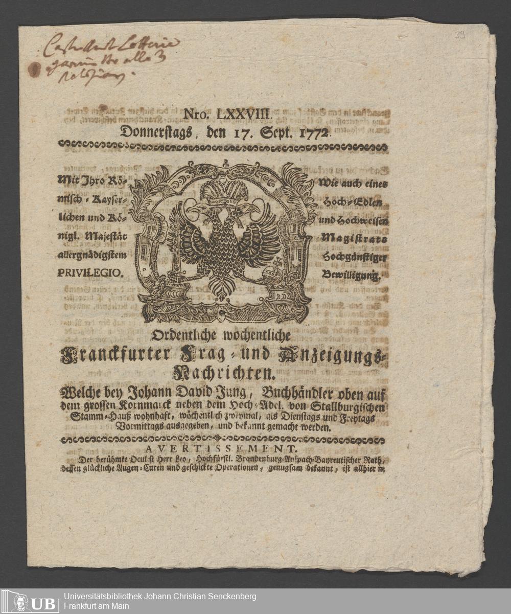 Na 31 Nachlass Johann Christian Senckenberg, 288 - Zeitungsartikel