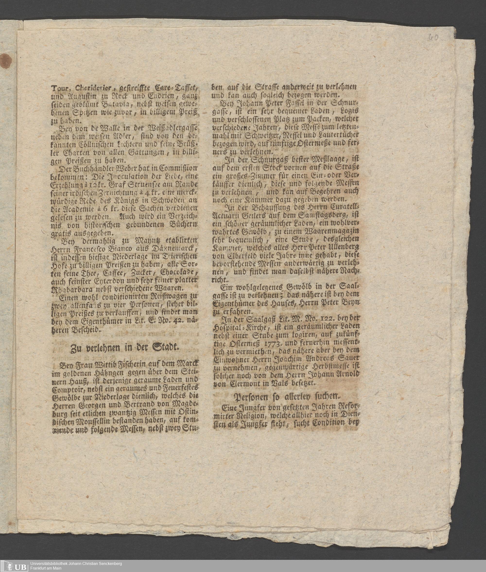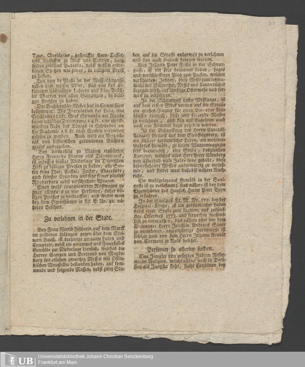 Na 31 Nachlass Johann Christian Senckenberg, 288 - Zeitungsartikel