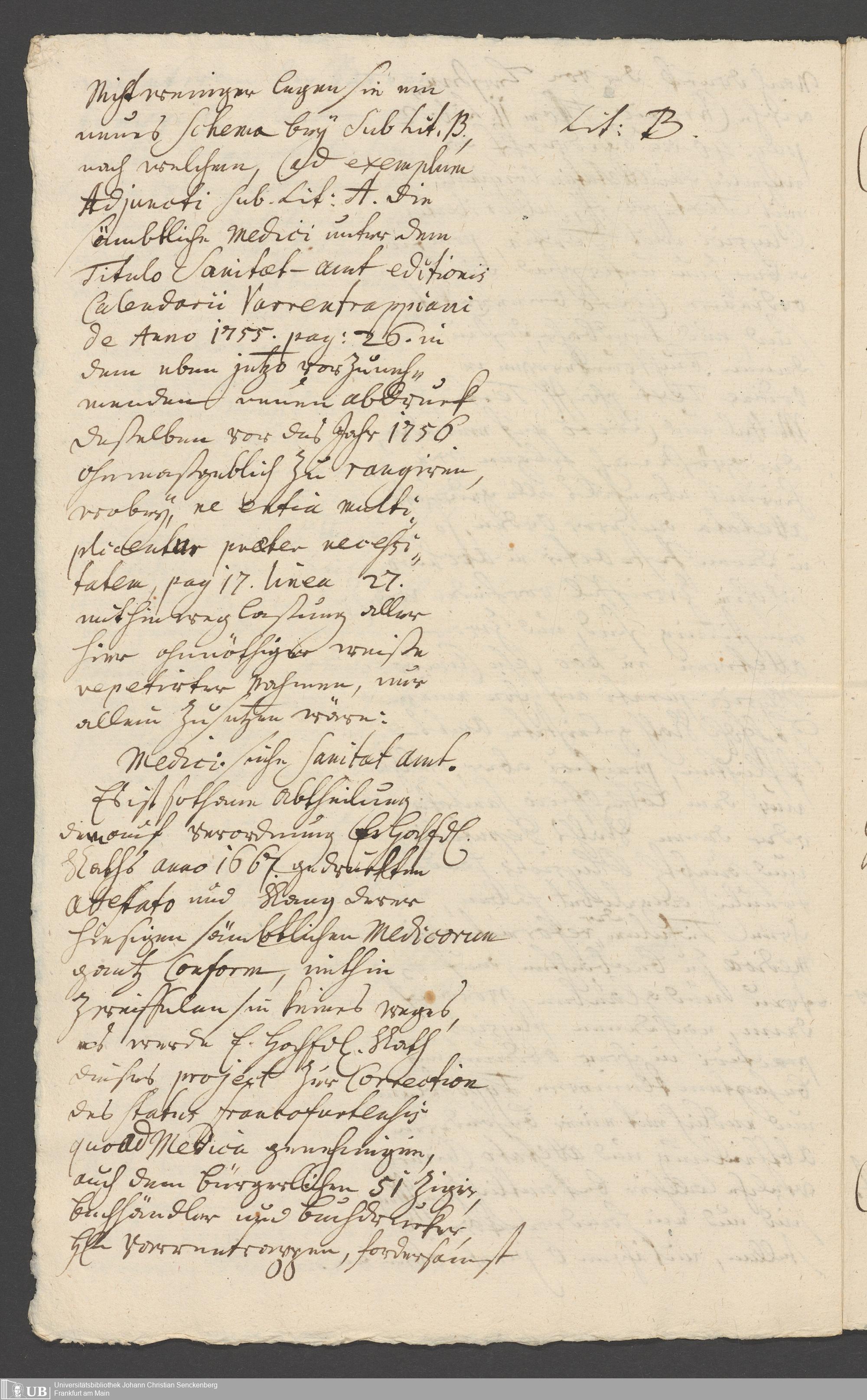 Na 31 Nachlass Johann Christian Senckenberg, 295 - Verbesserung des Medizinalwesens in Frankfurt