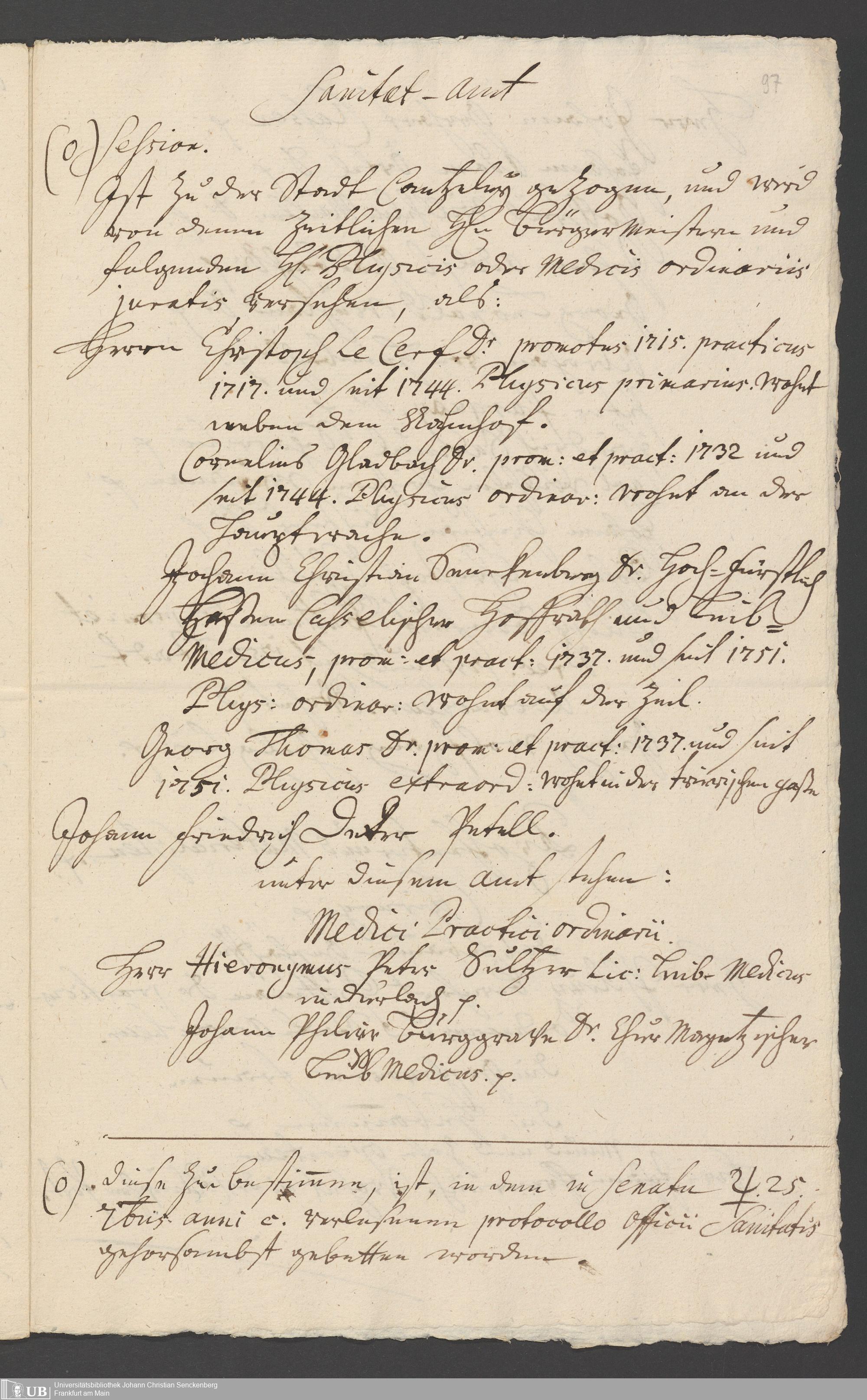 Na 31 Nachlass Johann Christian Senckenberg, 295 - Verbesserung des Medizinalwesens in Frankfurt