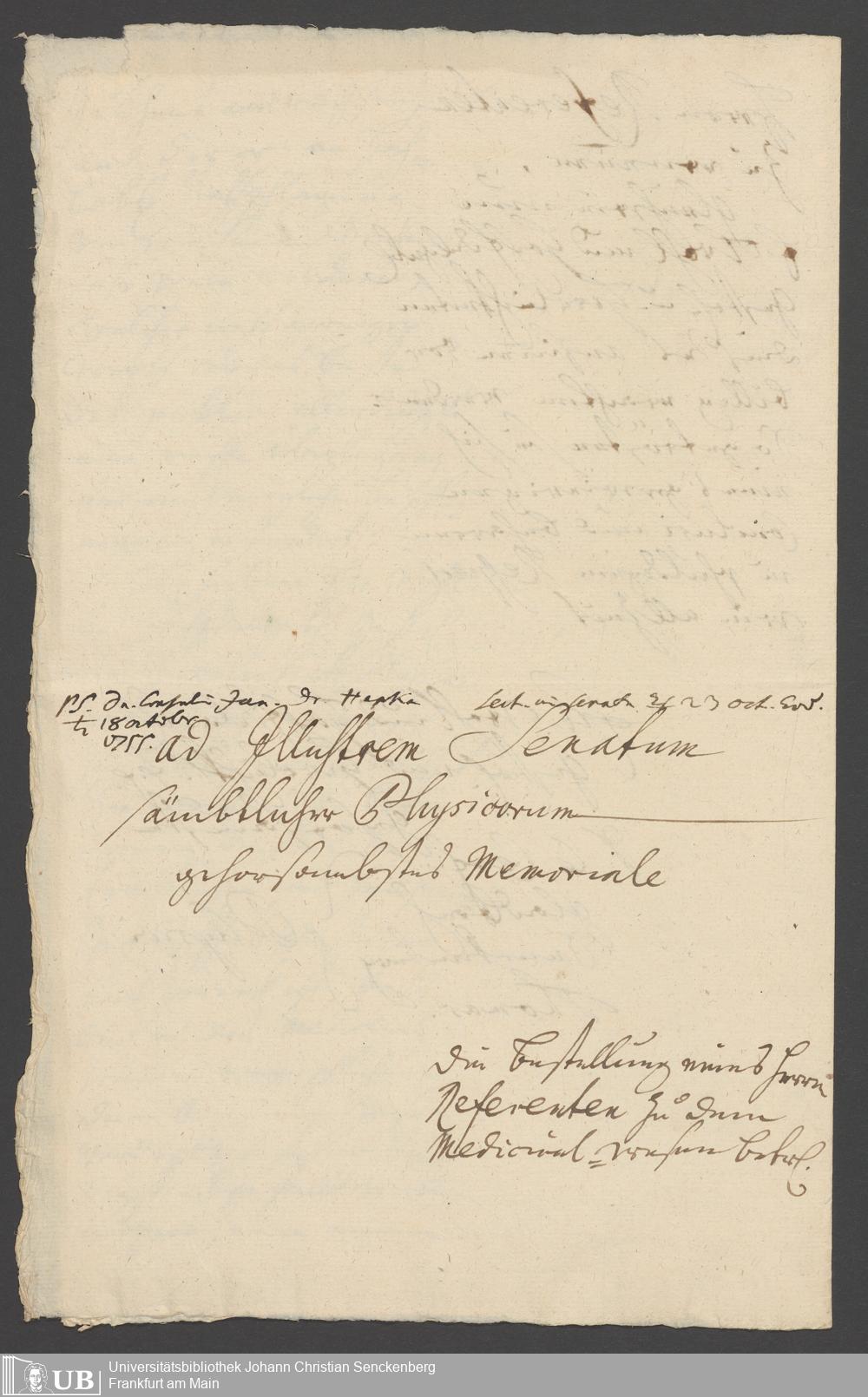 Na 31 Nachlass Johann Christian Senckenberg, 295 - Verbesserung des Medizinalwesens in Frankfurt