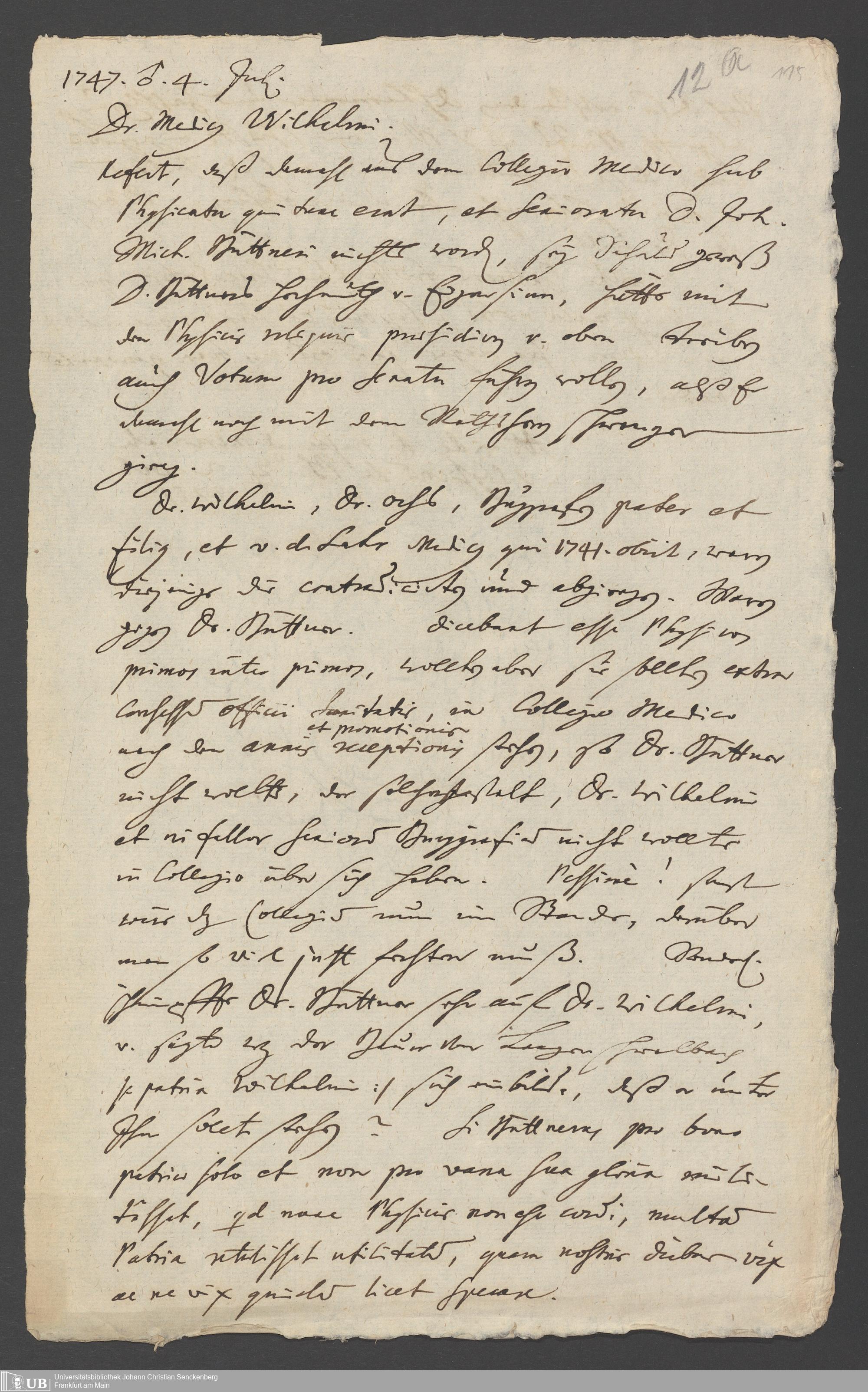 Na 31 Nachlass Johann Christian Senckenberg, 295 - Verbesserung des Medizinalwesens in Frankfurt