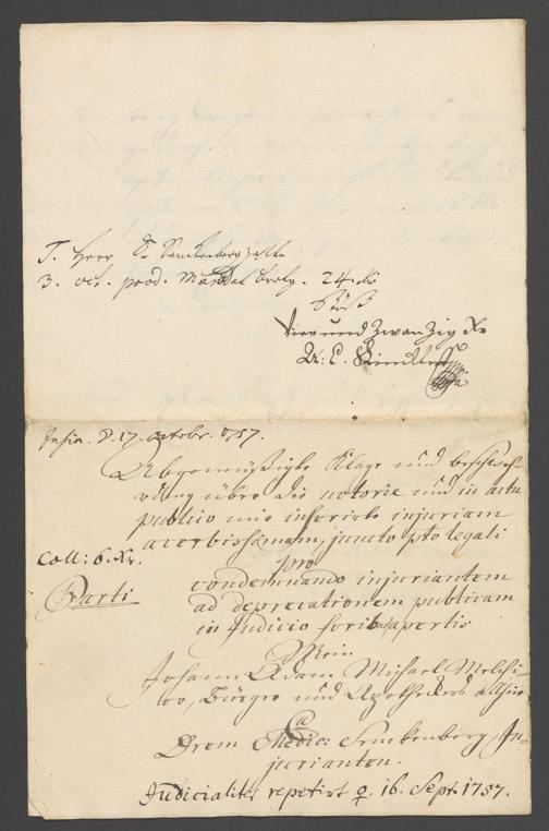 Na 31 Nachlass Johann Christian Senckenberg, 308 - Injurien Prozess Melchior/Senckenberg