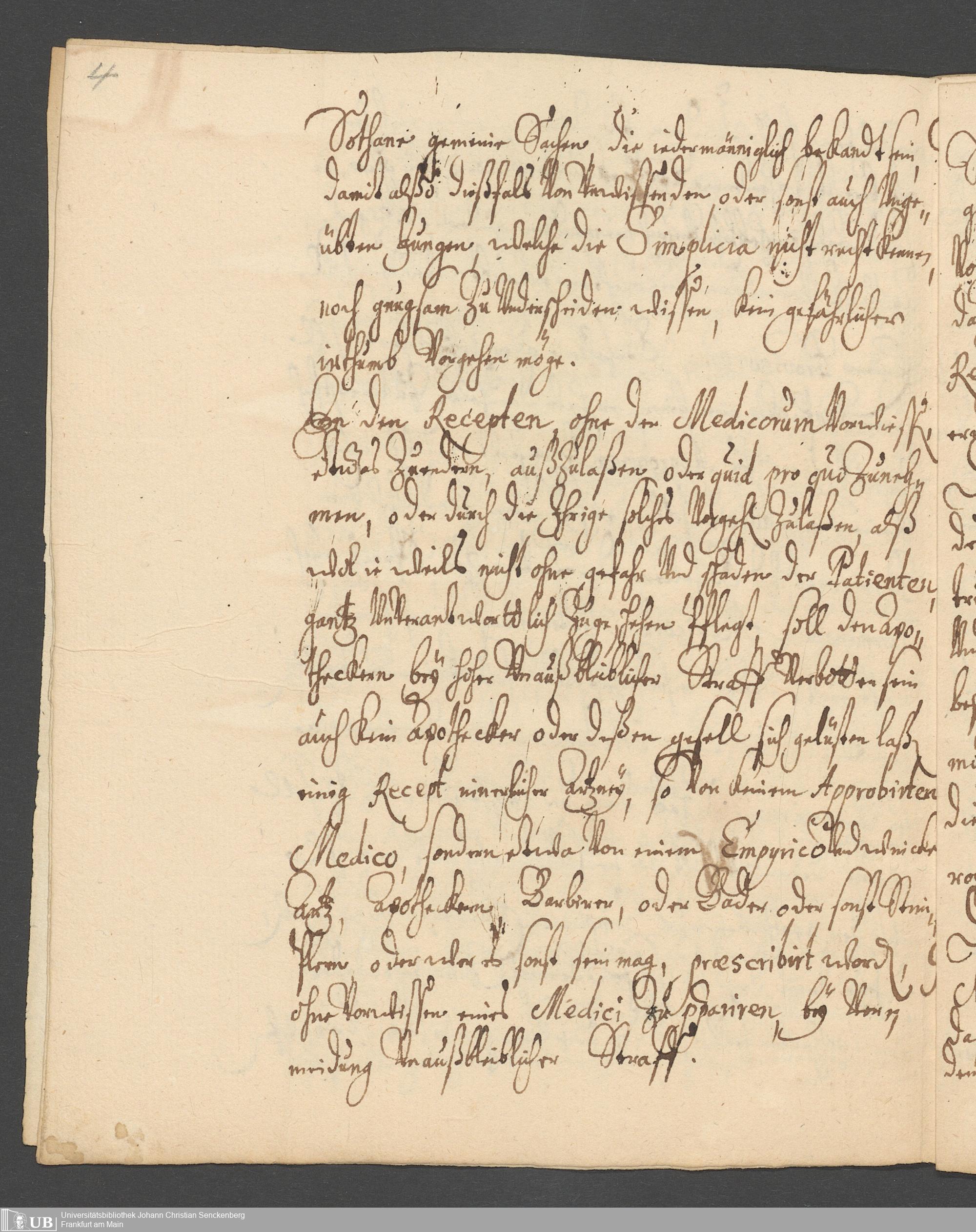 Na 31 Nachlass Johann Christian Senckenberg, 313 - Berichte Senckenbergs zum Apothekenwesen in Hanau