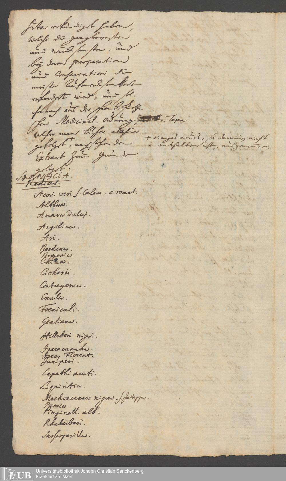 Na 31 Nachlass Johann Christian Senckenberg, 313 - Berichte Senckenbergs zum Apothekenwesen in Hanau