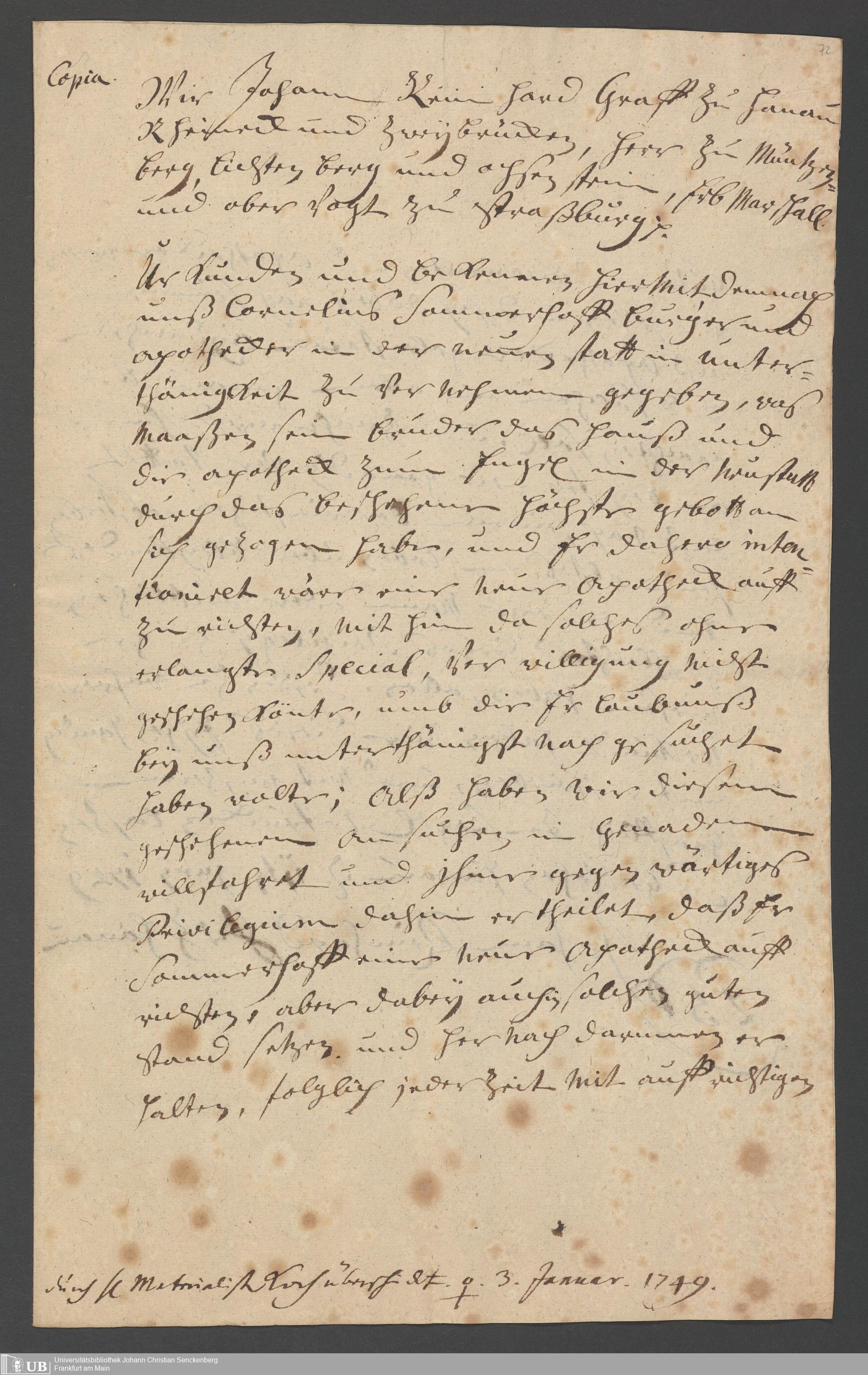 Na 31 Nachlass Johann Christian Senckenberg, 313 - Berichte Senckenbergs zum Apothekenwesen in Hanau