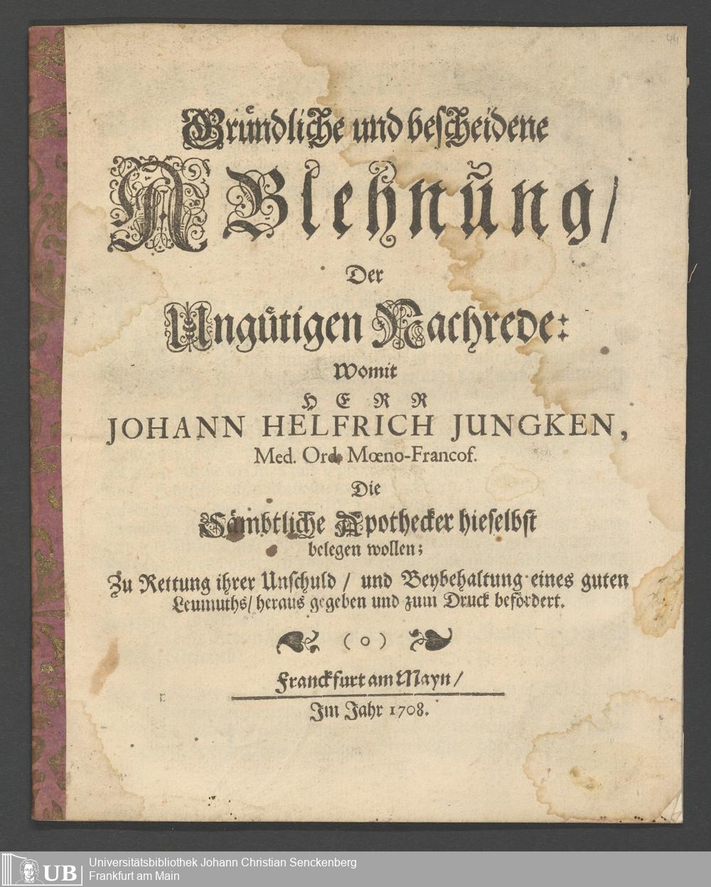 Na 31 Nachlass Johann Christian Senckenberg, 314 - Druckschriften zum Streit mit den Apothekern und den Materialisten