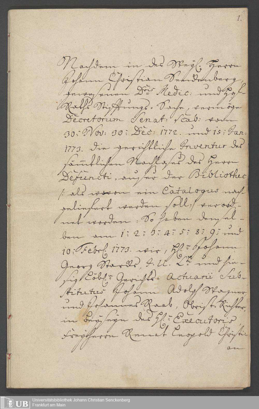 Nachlass Johann Christian Senckenberg