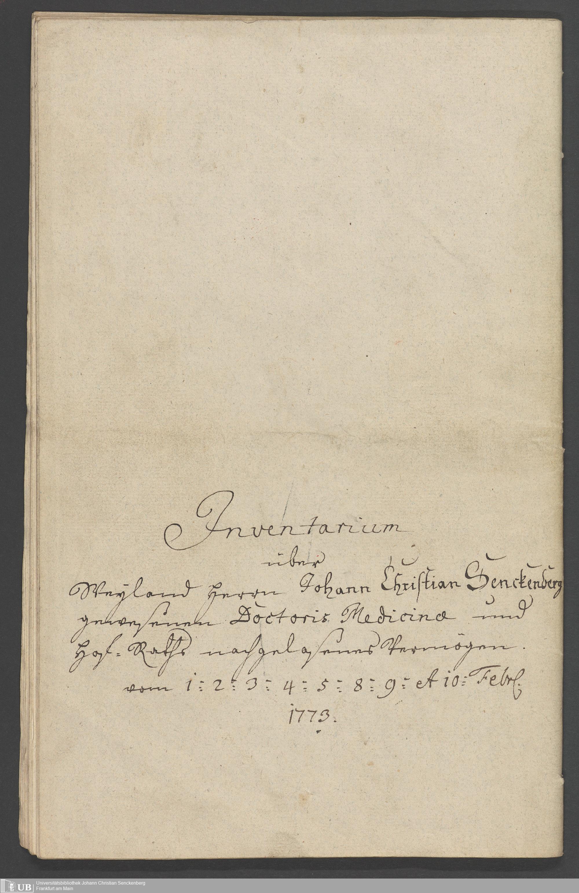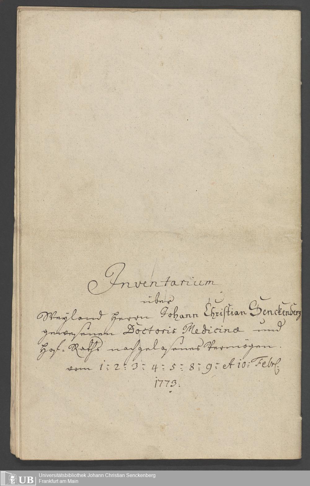 Na 31 Nachlass Johann Christian Senckenberg, 315 - Gerichtliches Inventar des Nachlasses