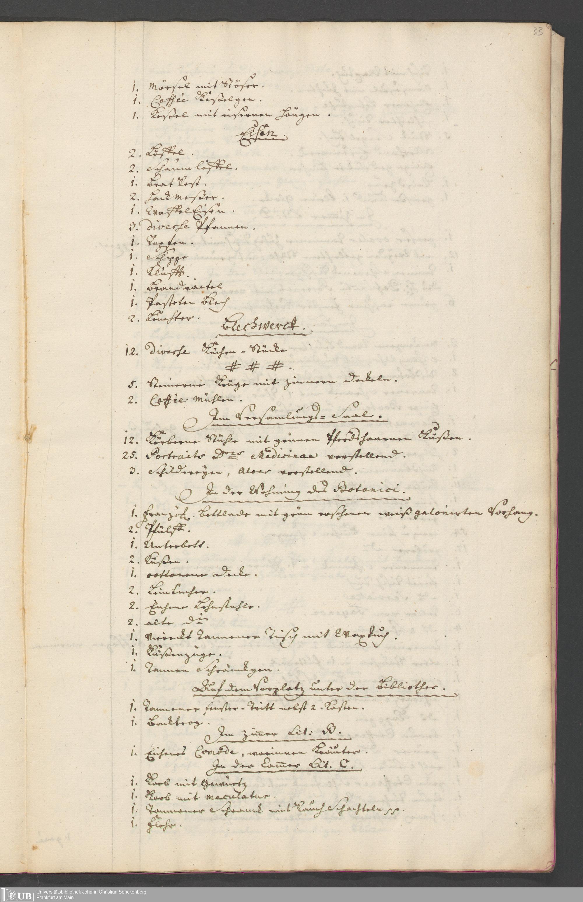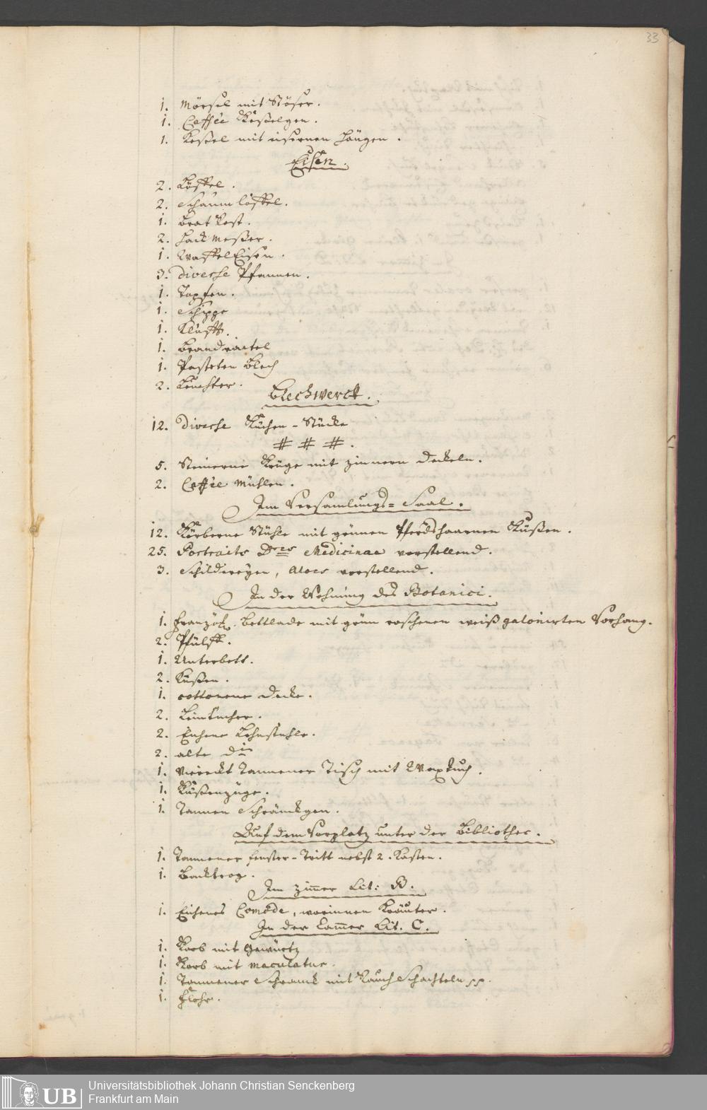Na 31 Nachlass Johann Christian Senckenberg, 315 - Gerichtliches Inventar des Nachlasses