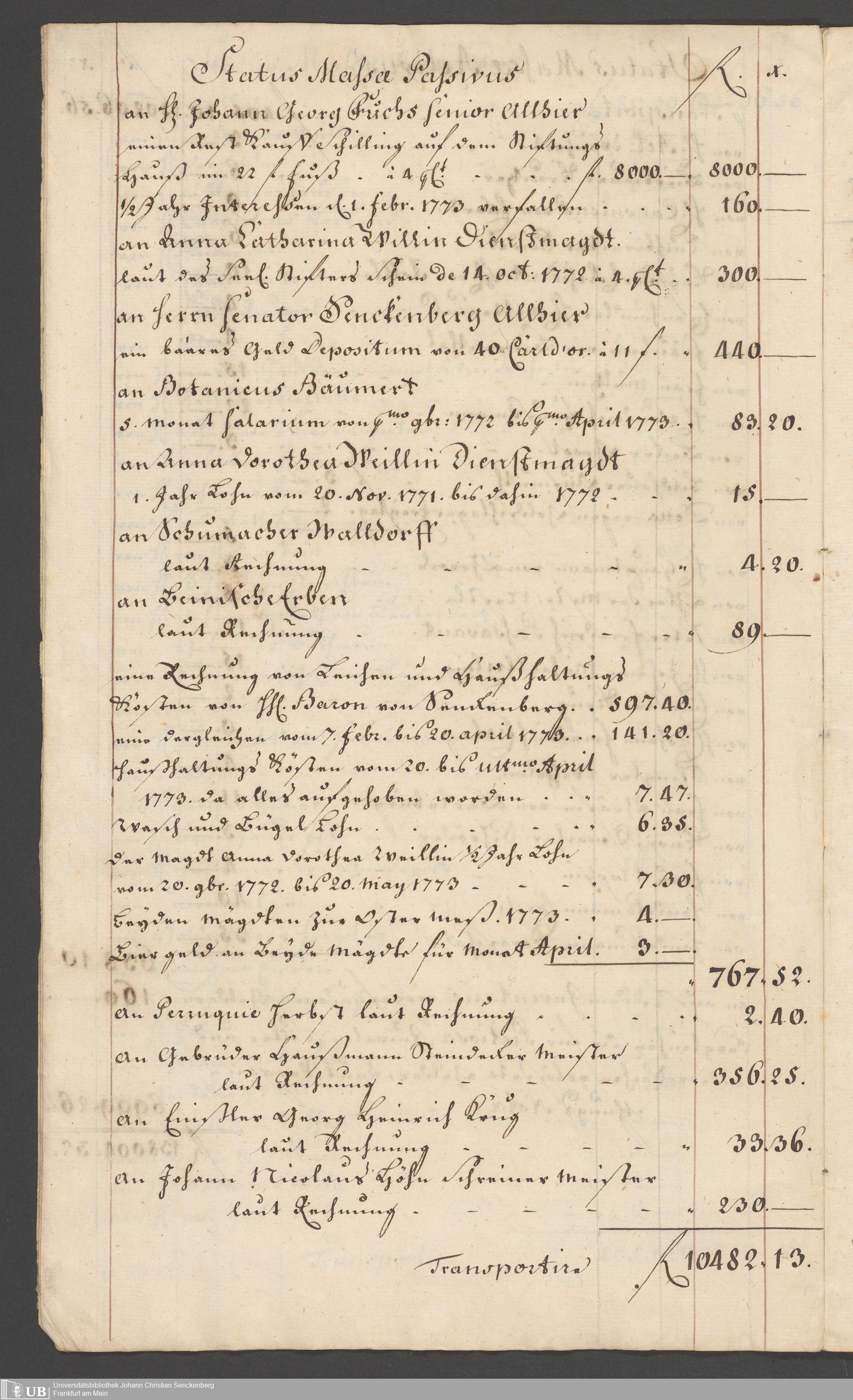 Na 31 Nachlass Johann Christian Senckenberg, 315 - Gerichtliches Inventar des Nachlasses