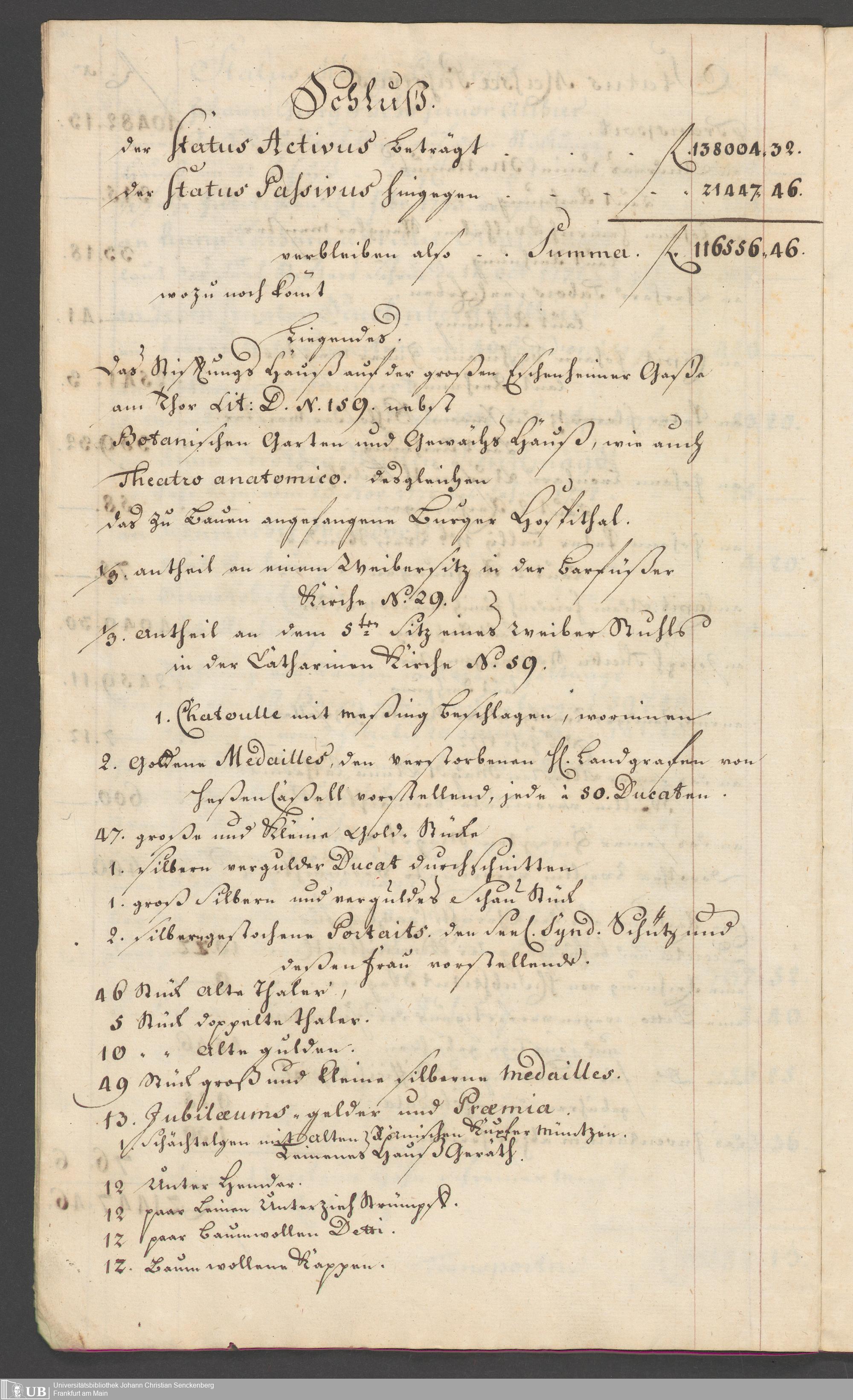 Na 31 Nachlass Johann Christian Senckenberg, 315 - Gerichtliches Inventar des Nachlasses
