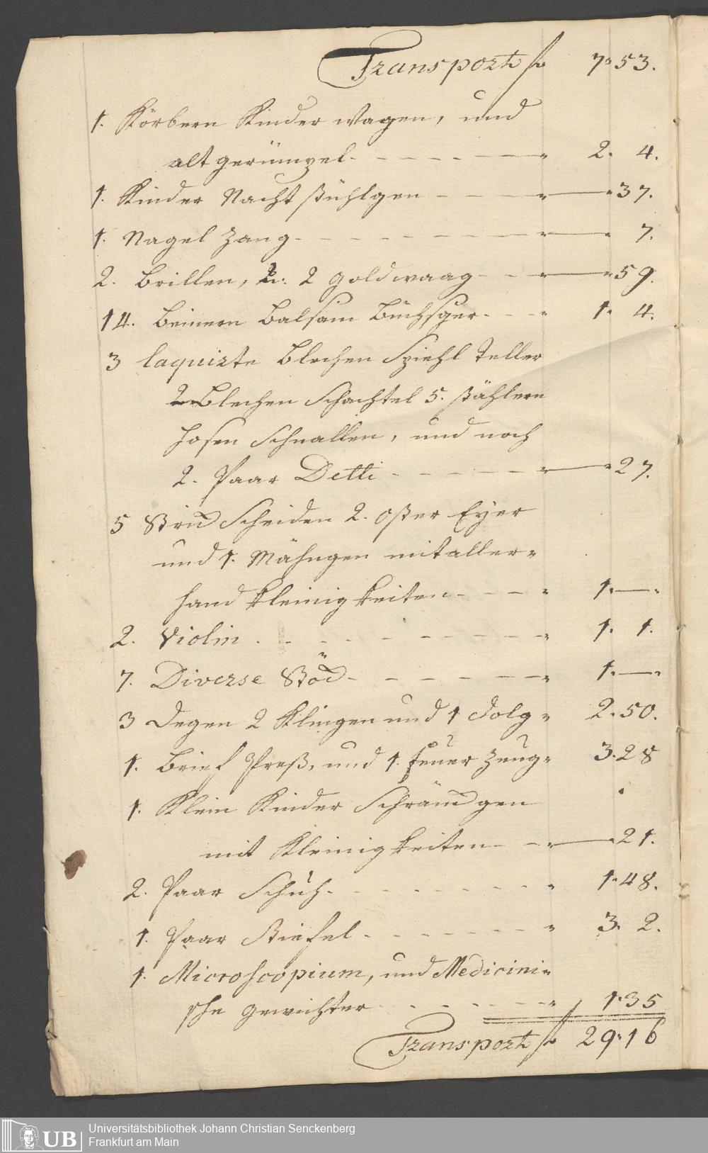 Na 31 Nachlass Johann Christian Senckenberg, 315 - Gerichtliches Inventar des Nachlasses