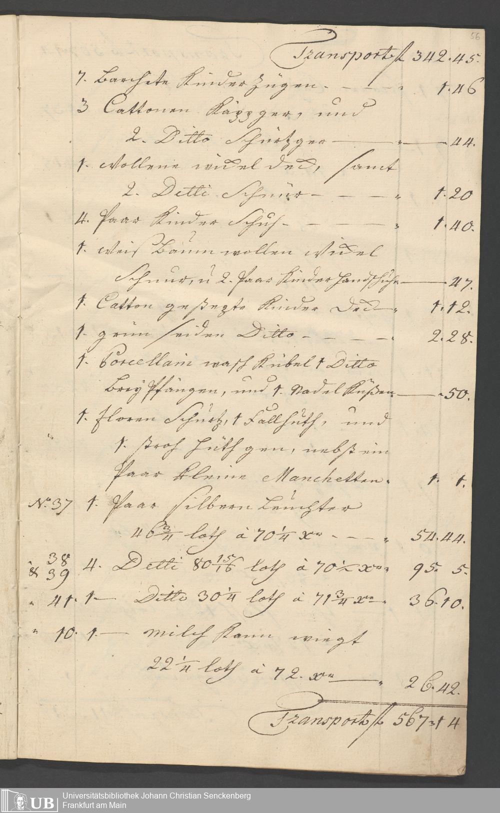 Na 31 Nachlass Johann Christian Senckenberg, 315 - Gerichtliches Inventar des Nachlasses