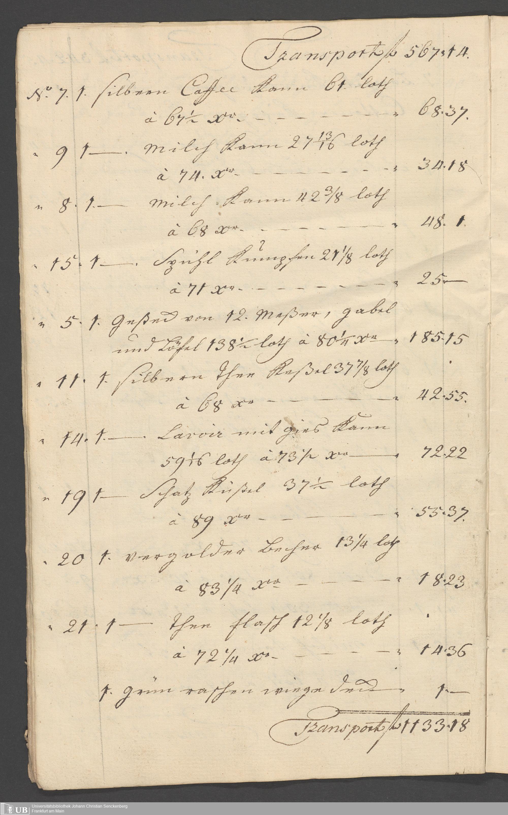 Na 31 Nachlass Johann Christian Senckenberg, 315 - Gerichtliches Inventar des Nachlasses