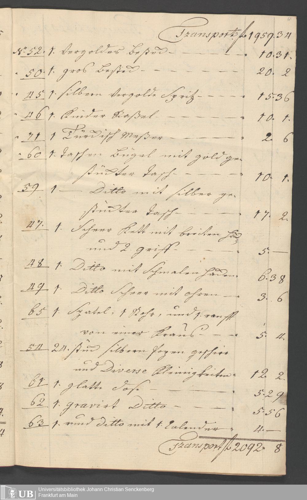 Na 31 Nachlass Johann Christian Senckenberg, 315 - Gerichtliches Inventar des Nachlasses