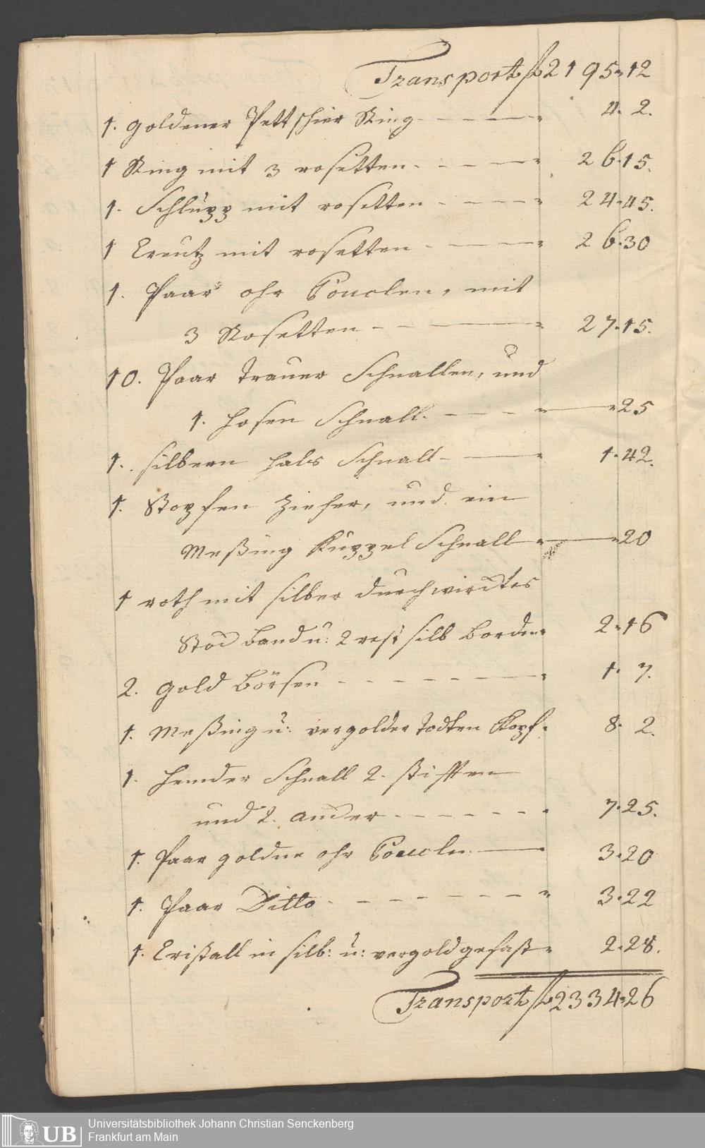 Na 31 Nachlass Johann Christian Senckenberg, 315 - Gerichtliches Inventar des Nachlasses