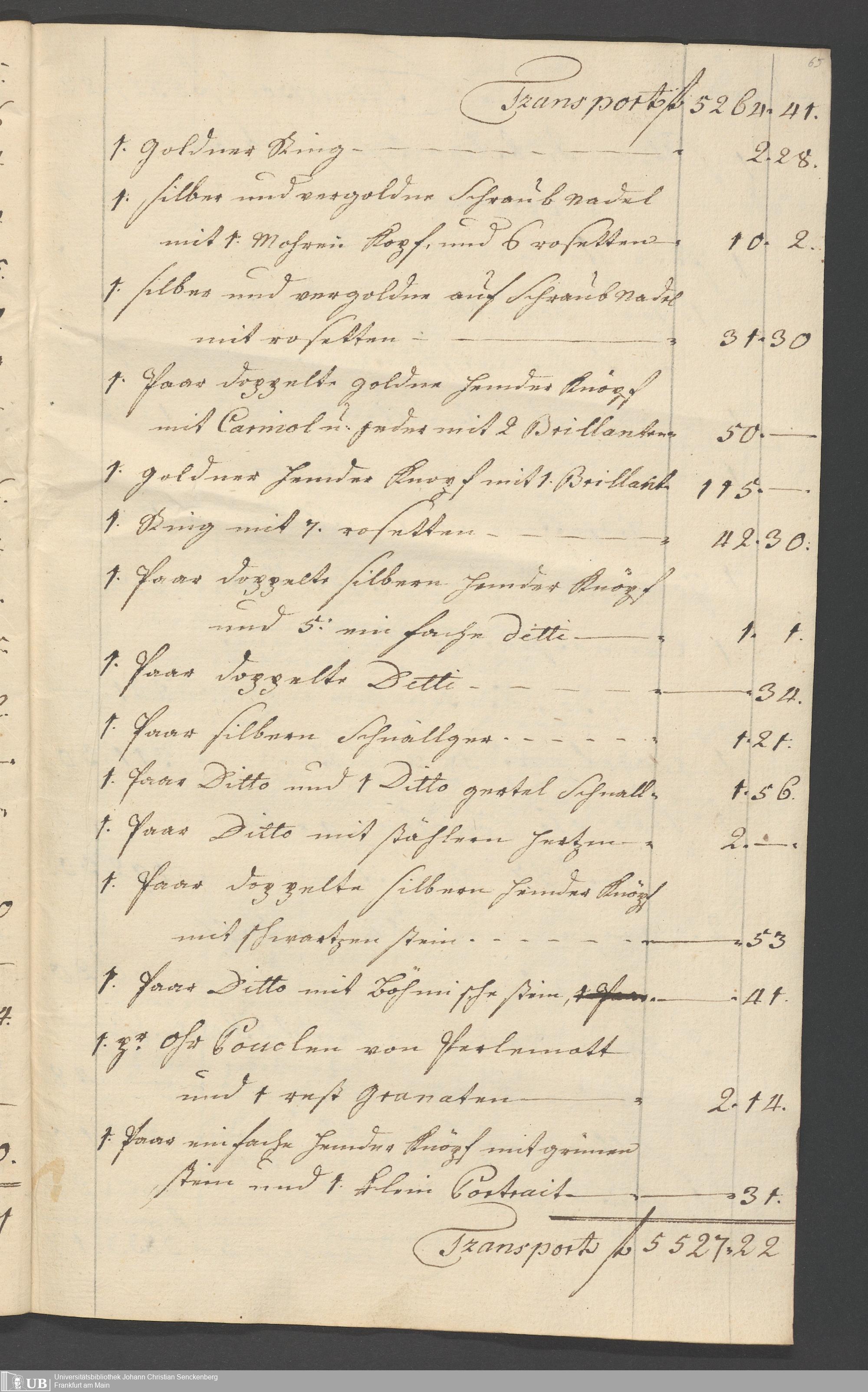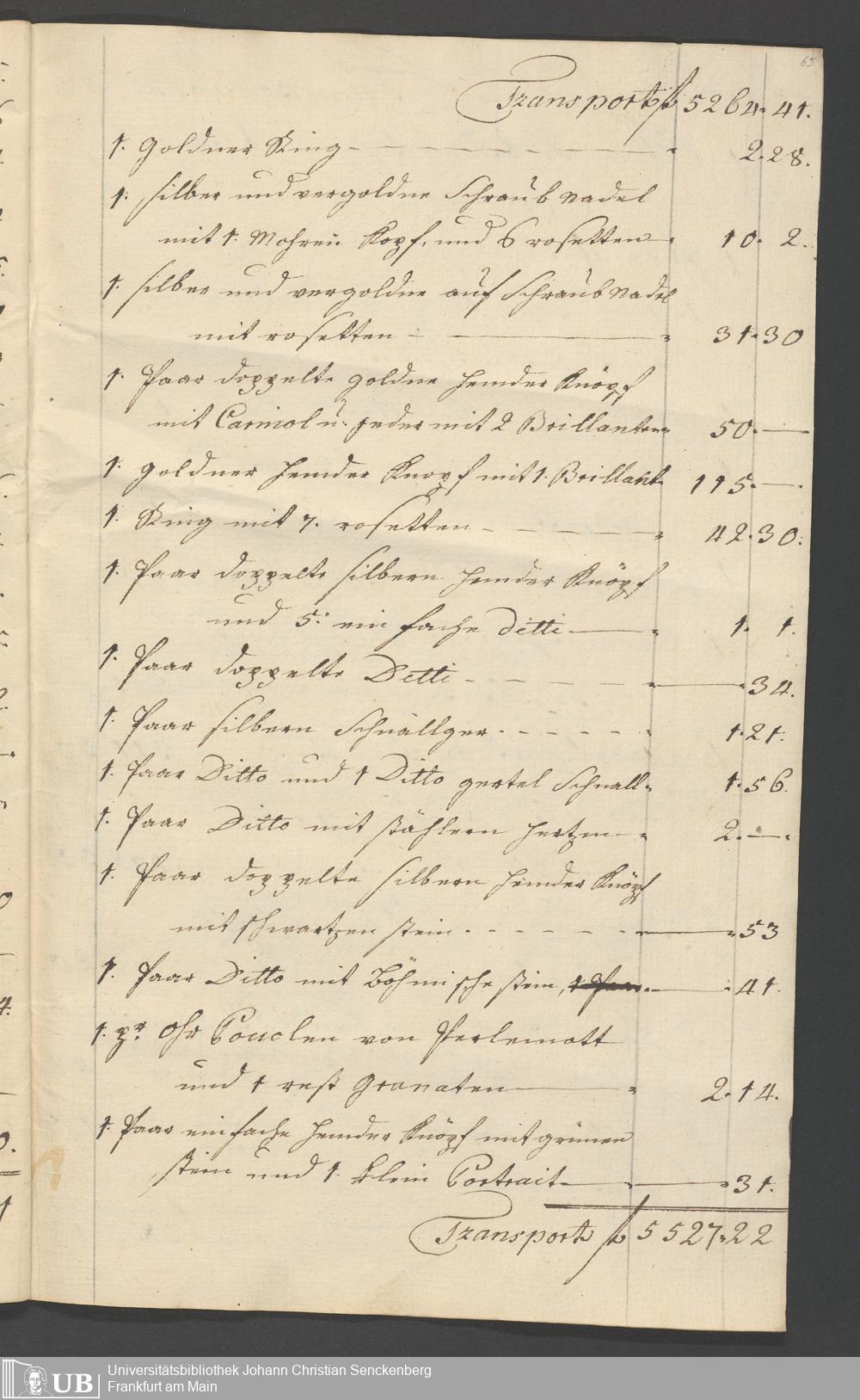 Na 31 Nachlass Johann Christian Senckenberg, 315 - Gerichtliches Inventar des Nachlasses