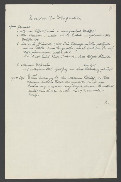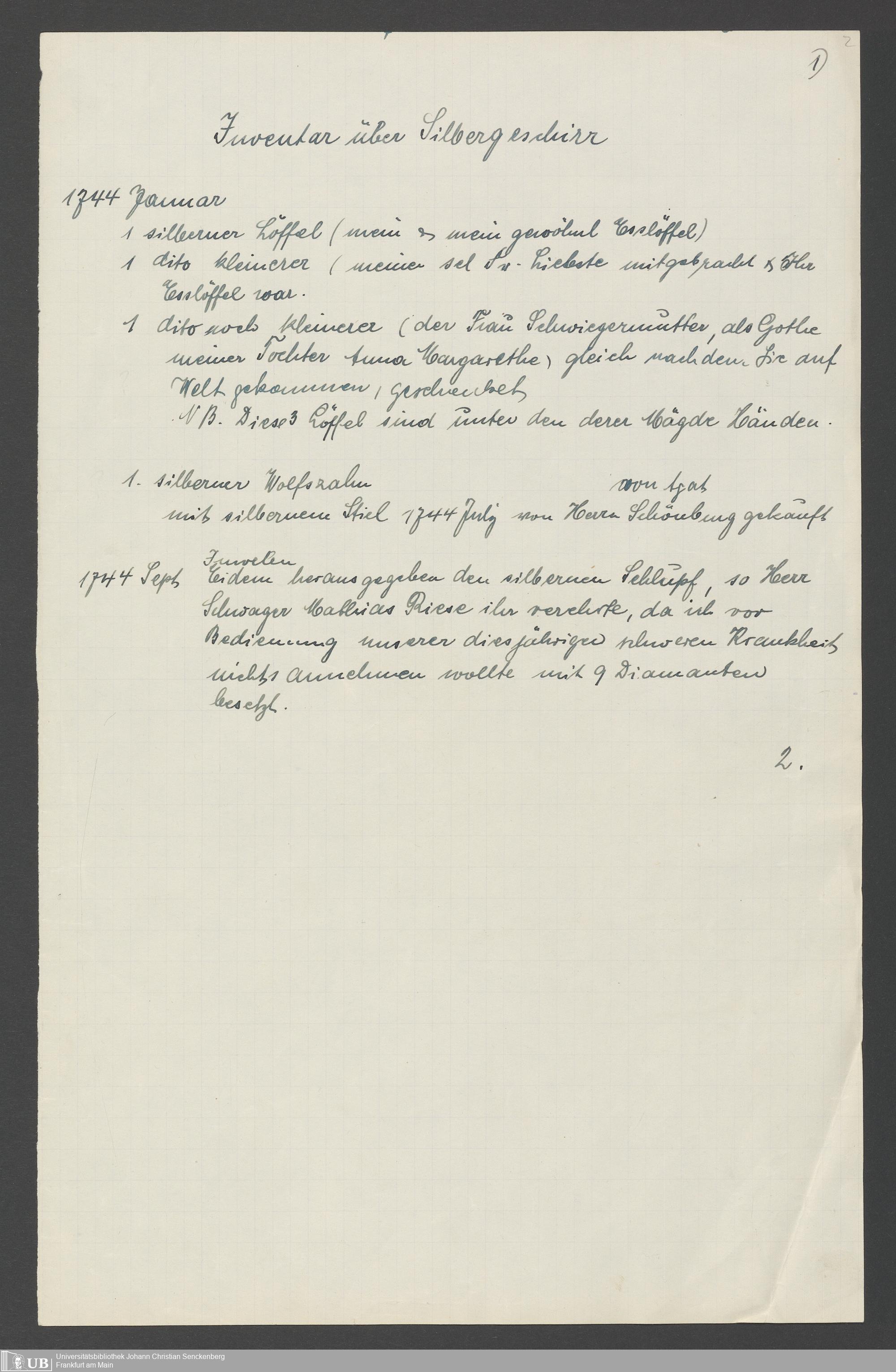 Na 31 Nachlass Johann Christian Senckenberg, 317 - Inventare über Haushaltungsgeräte, Mobilien, Instrumente, Bücher, Gold Silber, Juwelen