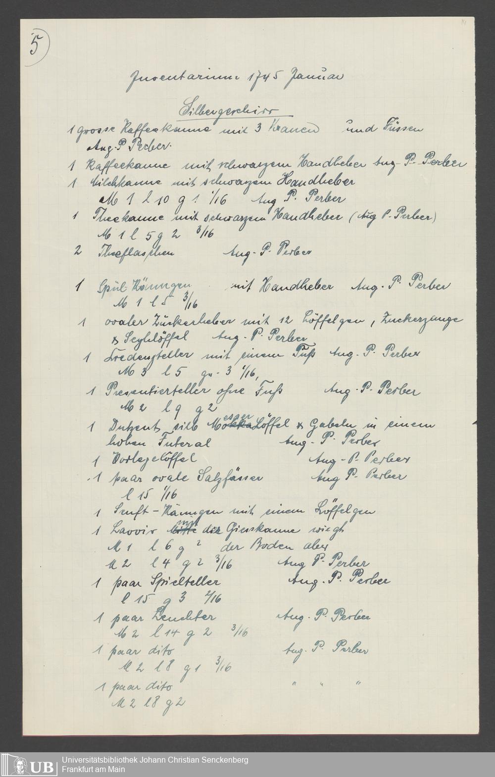 Na 31 Nachlass Johann Christian Senckenberg, 317 - Inventare über Haushaltungsgeräte, Mobilien, Instrumente, Bücher, Gold Silber, Juwelen