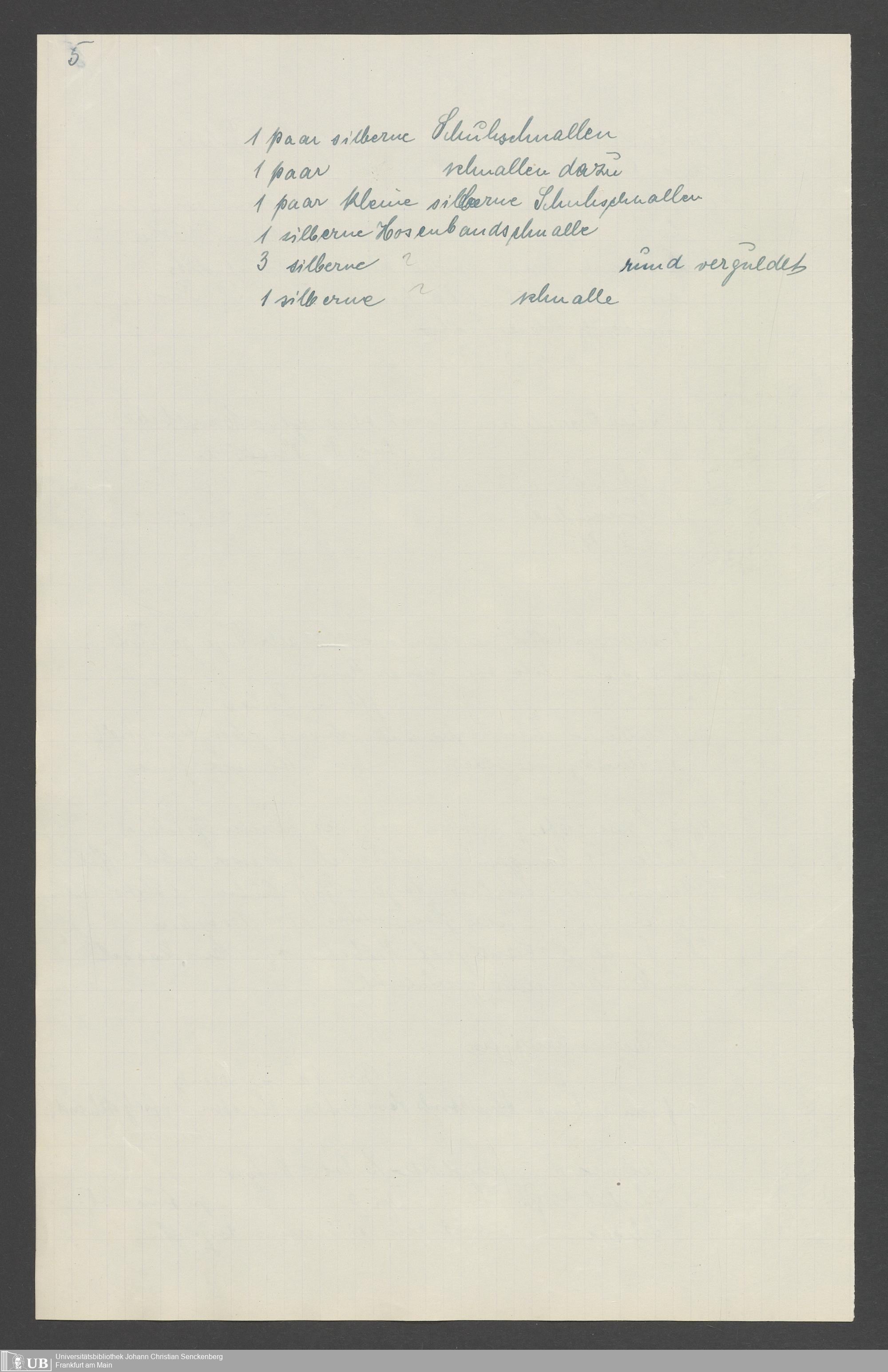 Na 31 Nachlass Johann Christian Senckenberg, 317 - Inventare über Haushaltungsgeräte, Mobilien, Instrumente, Bücher, Gold Silber, Juwelen