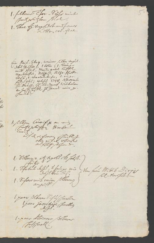Na 31 Nachlass Johann Christian Senckenberg, 317 - Inventare über Haushaltungsgeräte, Mobilien, Instrumente, Bücher, Gold Silber, Juwelen