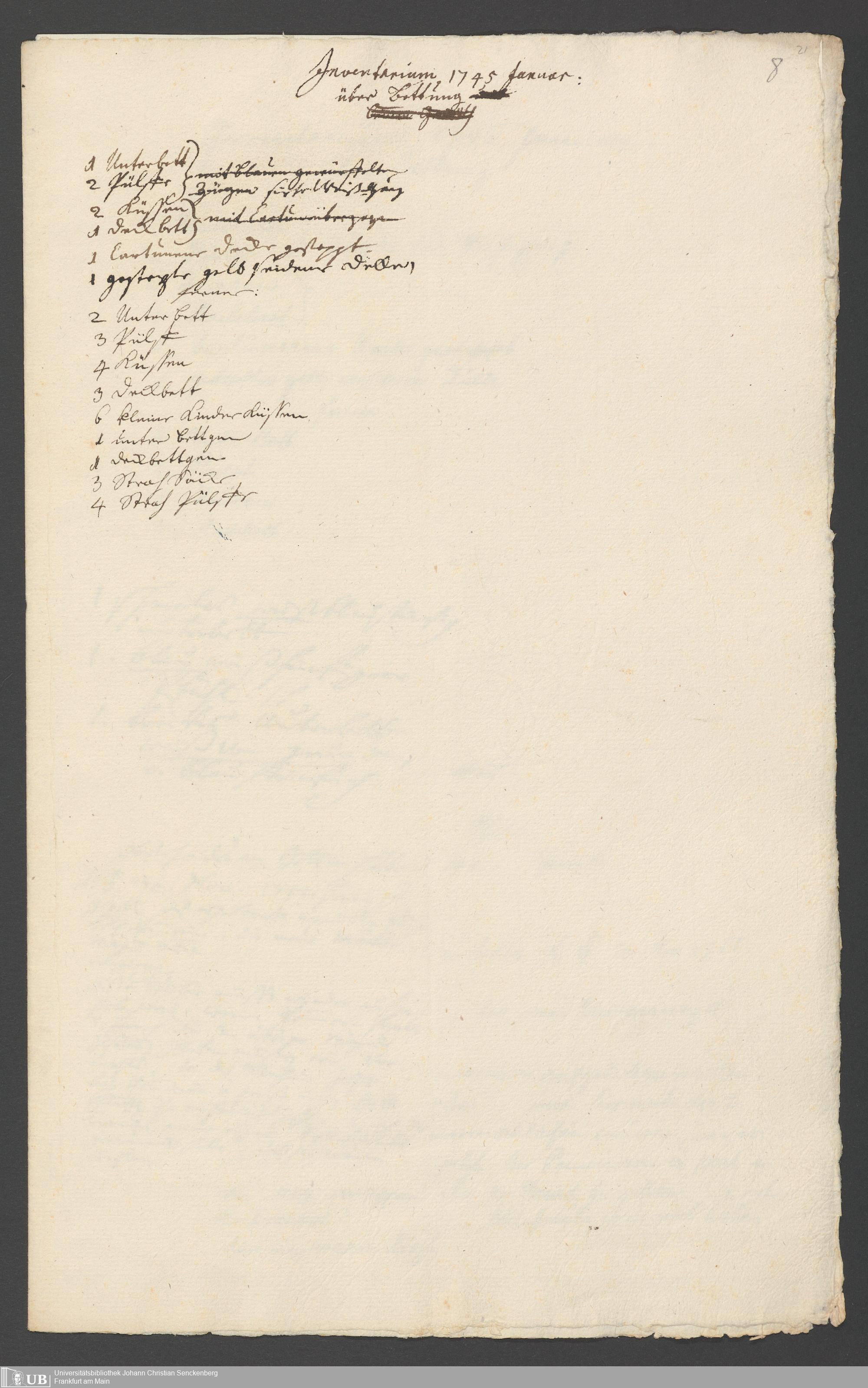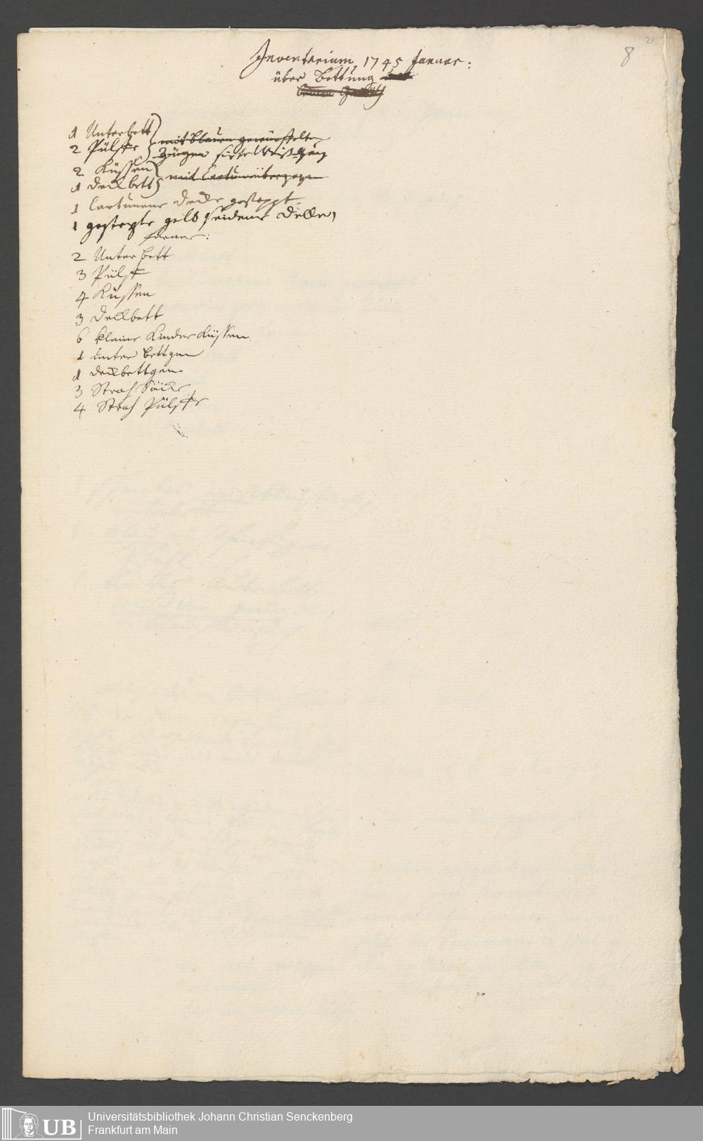 Na 31 Nachlass Johann Christian Senckenberg, 317 - Inventare über Haushaltungsgeräte, Mobilien, Instrumente, Bücher, Gold Silber, Juwelen