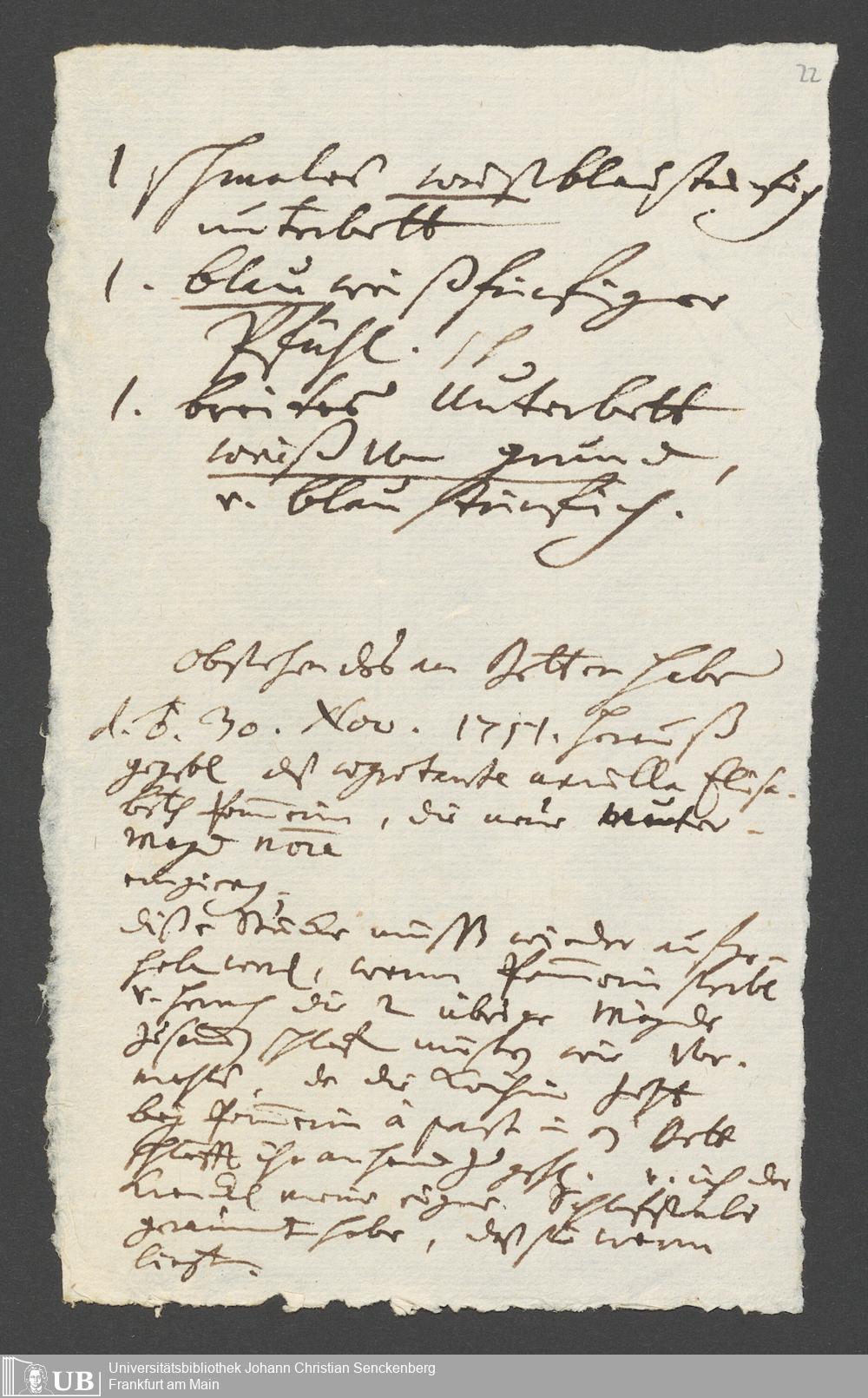 Na 31 Nachlass Johann Christian Senckenberg, 317 - Inventare über Haushaltungsgeräte, Mobilien, Instrumente, Bücher, Gold Silber, Juwelen